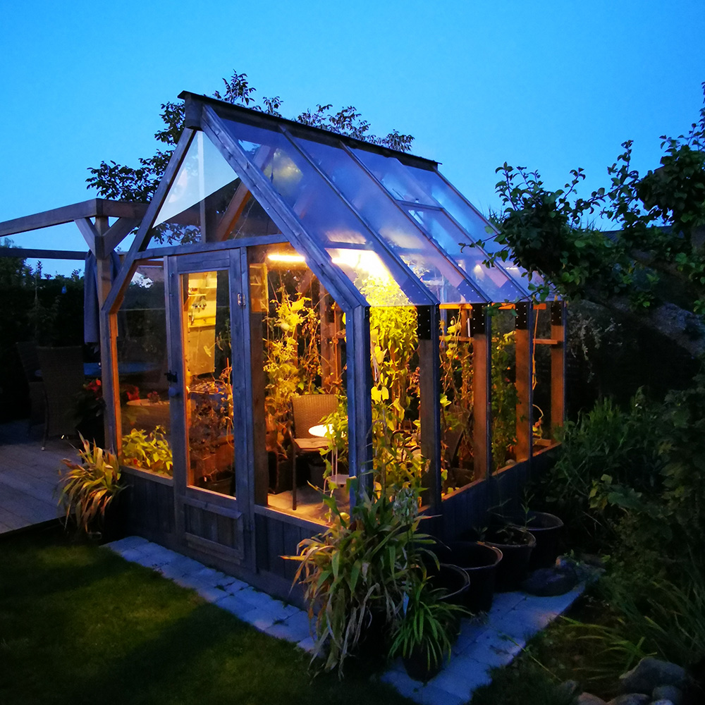 Tunnelma on siro kasvihuonevalaisin, joka on valmistettu anodisoidusta alumiinista ja tarkoitettu luomaan miellyttävää valoa, kun vietät aikaa kasvihuoneessasi. Lamppu kiinnitetään kattoon alumiini- tai puukasvihuoneessa mukana toimitettavilla ripustuskiinnikkeillä sekä ruostumattomilla vaijereilla.