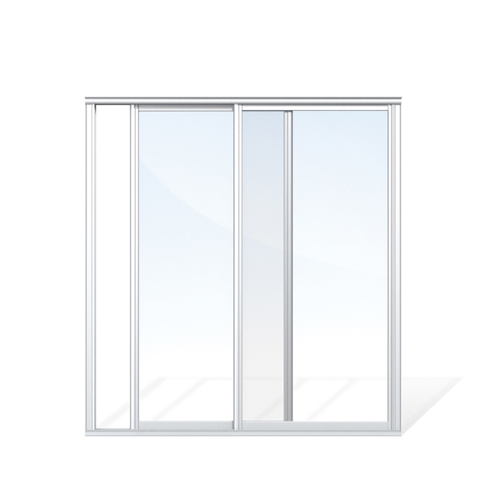 Ilmoitetut mitat ovat elementtien karmin ulkomittoja. Ovien leveys vaihtelee riippuen valitsemastasi liukuelementtien leveydestä. Tietyissä leveyksissä kisko toimitetaan ylipitkänä, jolloin se on lyhennettävä sopivan mittaiseksi. Lisätietoa asennusohjeesta.