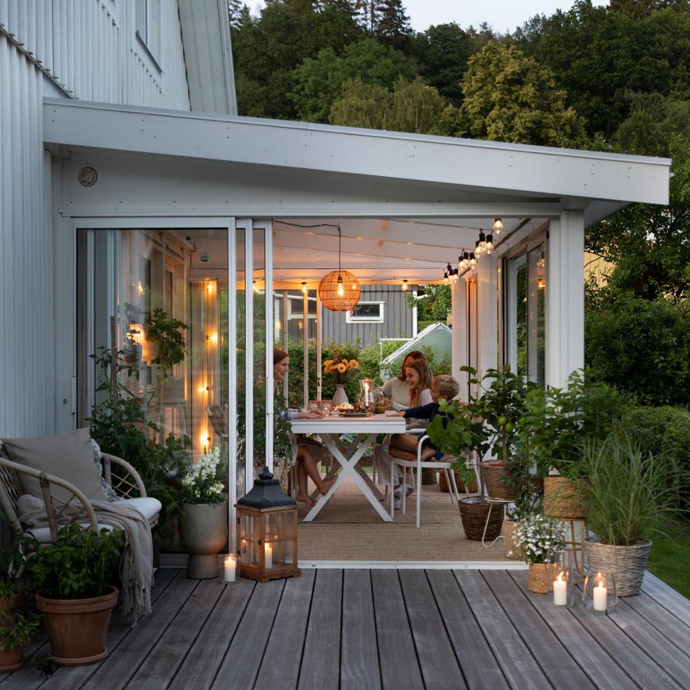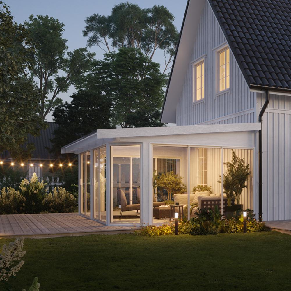 Vallda lasiterassi pulpettikatolla on suosituin lasiterassimallimme ja ehdoton myyntimenestys. Mallia on saatavilla peräti 150 eri koossa, jotta löydät juuri sinun taloosi sopivan ratkaisun.