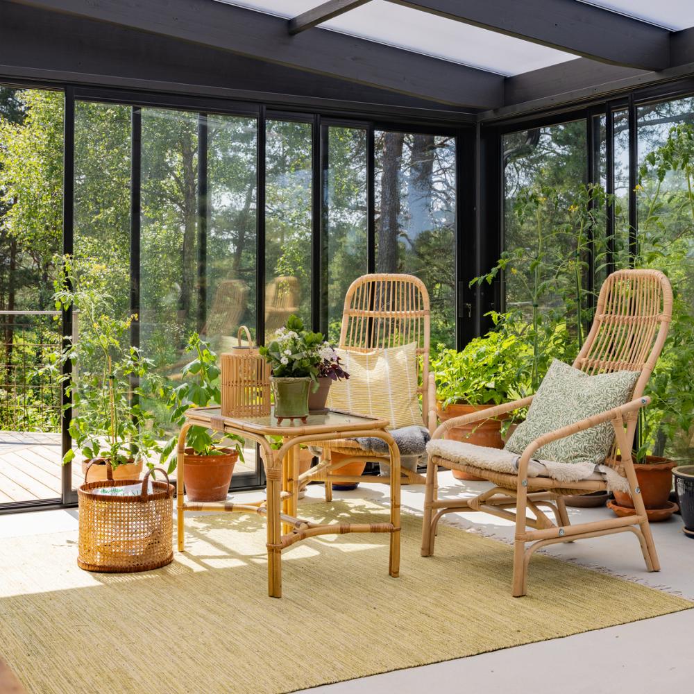 Kuusesta valmistettu liimapuurunko tarjoaa kestävän, tukevan ja viihtyisän lasiterassin vuosiksi eteenpäin. Vesipohjainen pohjakäsittely sisältää suojaavia aineita, jotka estävät lahoa, sieniä ja hyönteisiä.