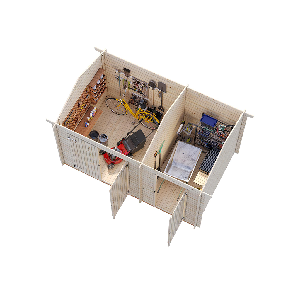 Varasto on valmistettu pohjoismaisesta kuusesta ja toimitetaan rakennuspaketteina, jossa mukana yksityiskohtaiset asennusohjeet, joita on helppo seurata.