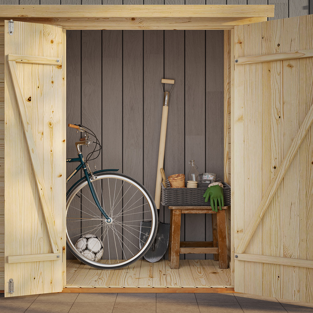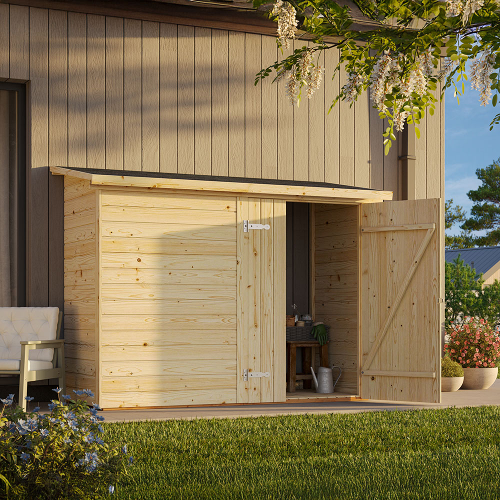 Kätevä säilytyspaikka ruohonleikkurille, puutarhavälineille ja vaikka polkupyörälle.