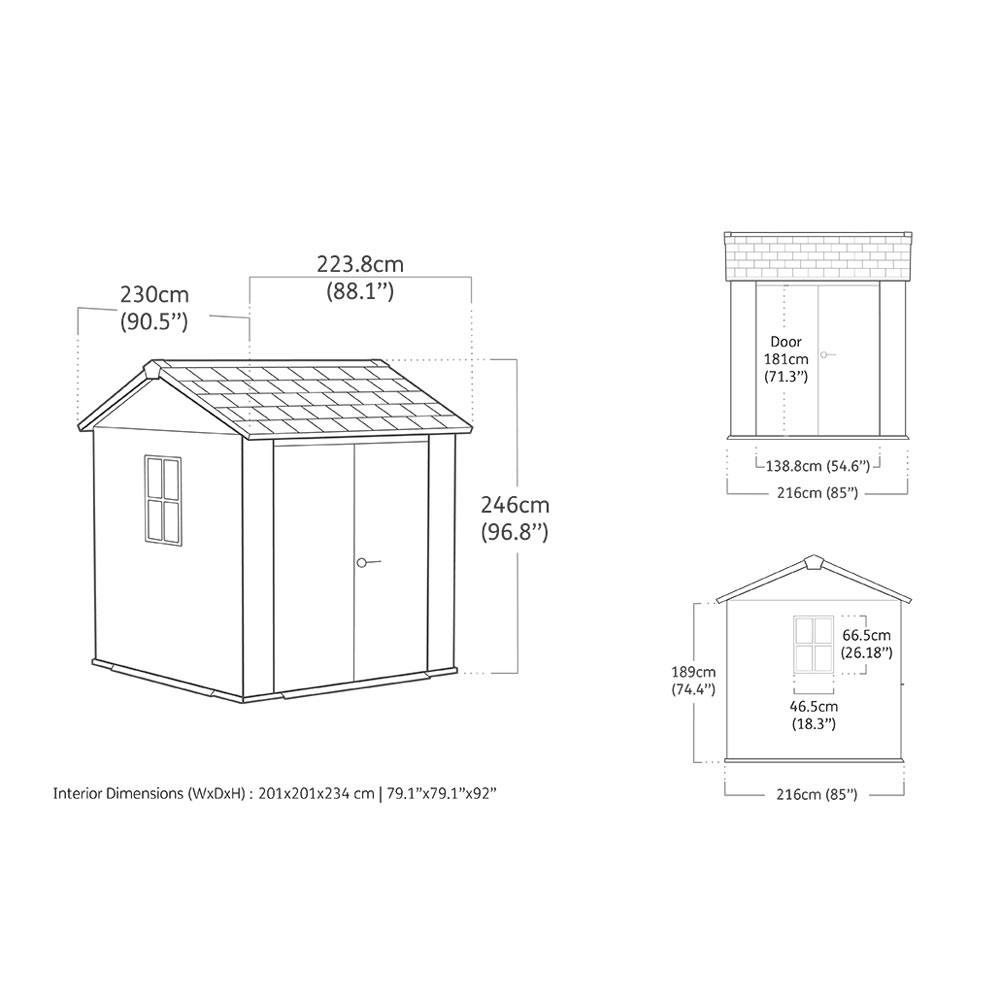 | Sisämitat (L x S x K) | 201 x 201 x 234 cm |