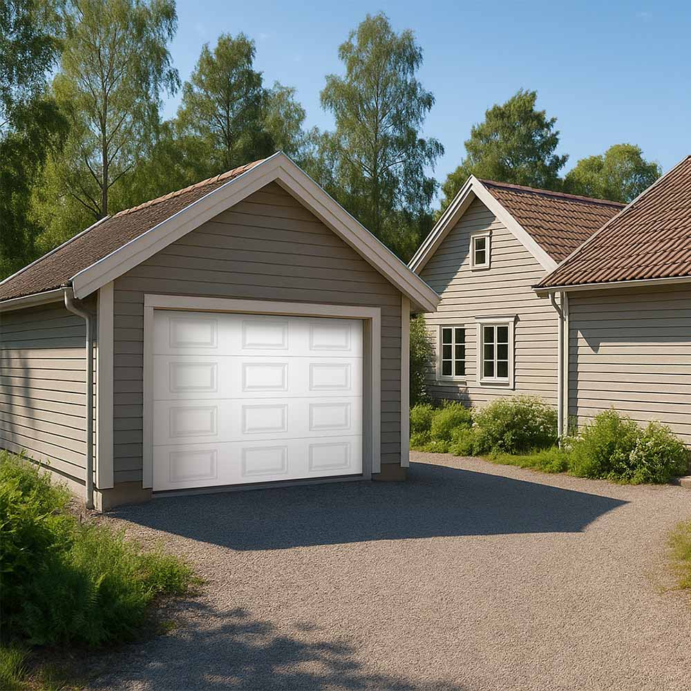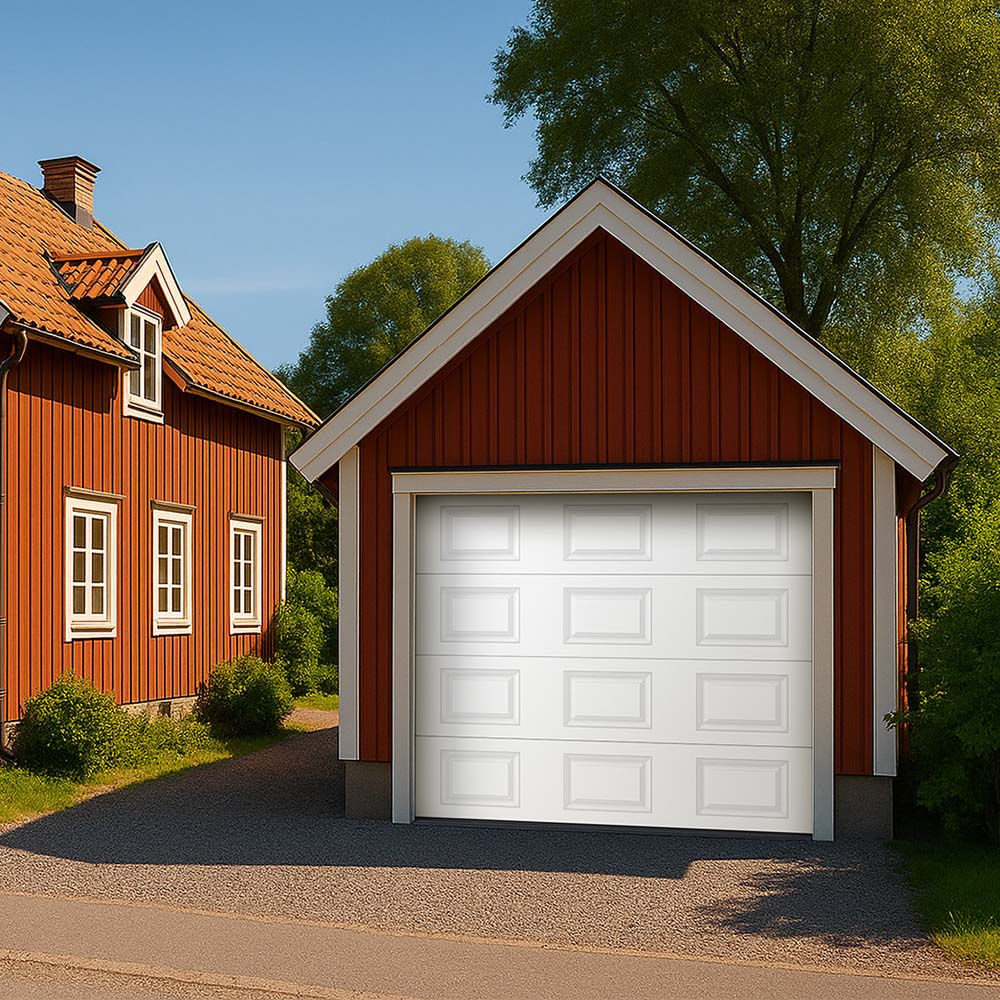 Garageporten finns att välja i flera olika färger och storlekar så att du ska hitta en port som passar för just ditt garage. Alla garageportar i serien är vita på insidan.