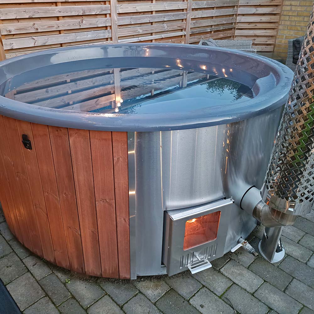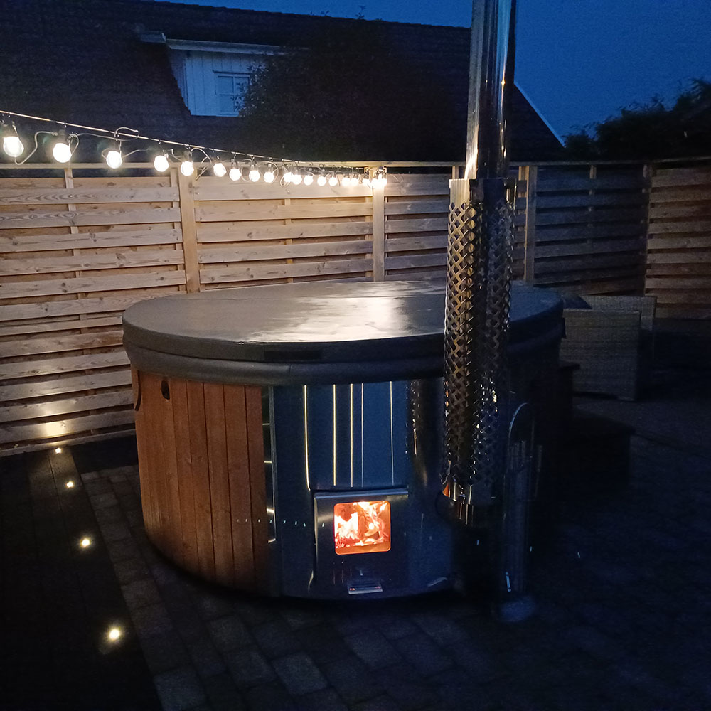 Den smarta konstruktionen med en vedeldad kamin gör att du kan placera din badtunna även på ställen som inte är lika lättåtkomliga eftersom du inte behöver tillgång till el. Varför inte placera din badtunna på den där vackra platsen längst bort på tomten som inte riktigt nyttjas idag?