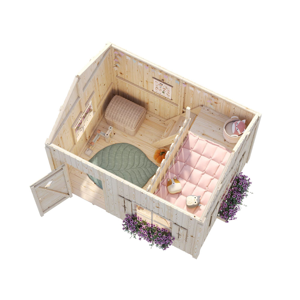 Lekstuga Grete har både fönsterluckor och små söta blomsterlådor.