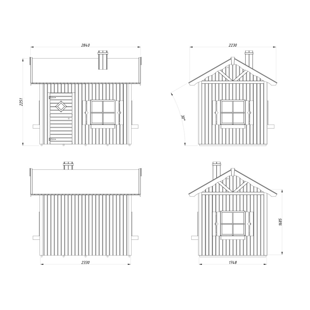 Lekstugan är obehandlad och måste grundoljas, grund- och täckmålas innan användning. Levereras i byggsatser som du själv monterar med hjälp av utförliga monteringsanvisningar.