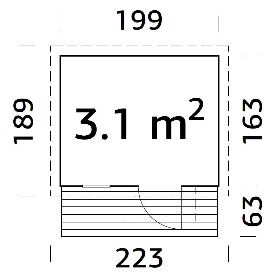| Invändigt mått | 3,1 m² |