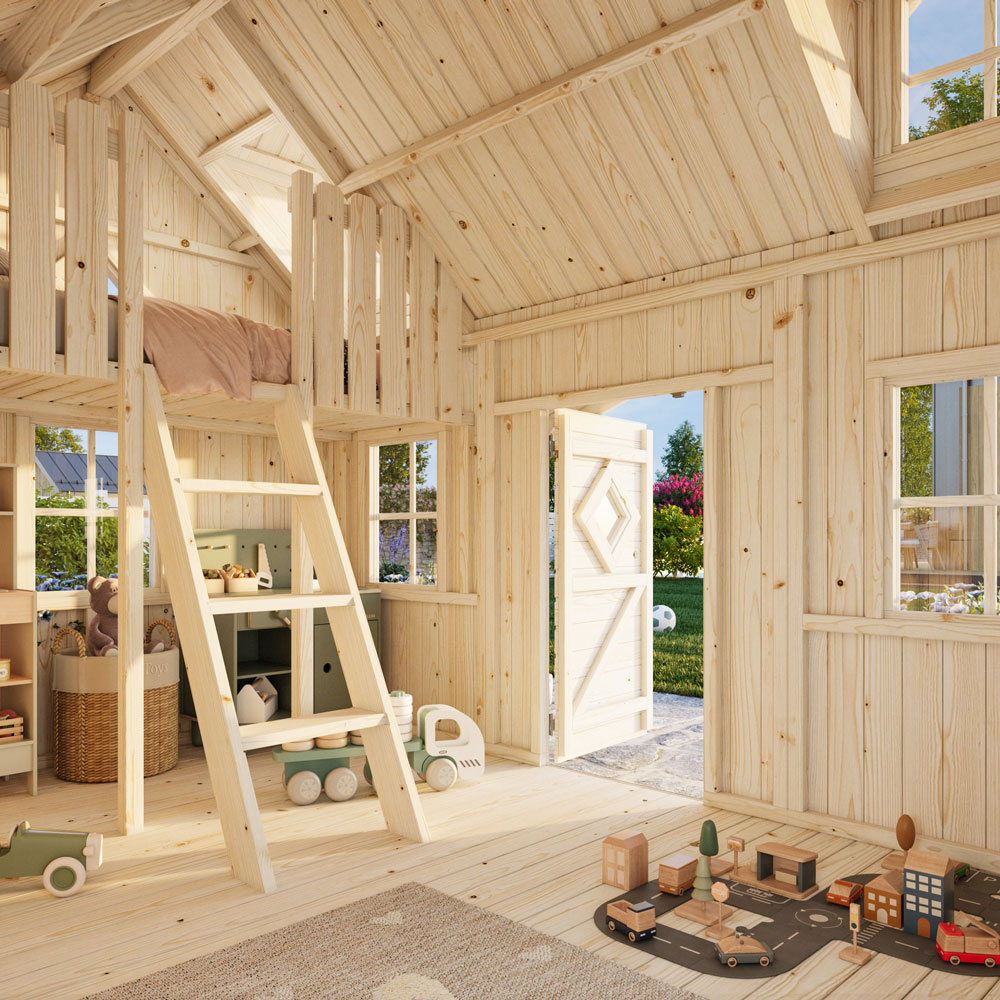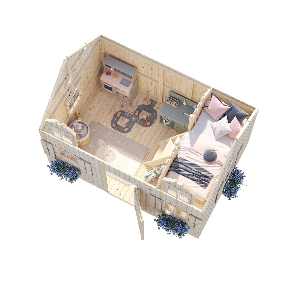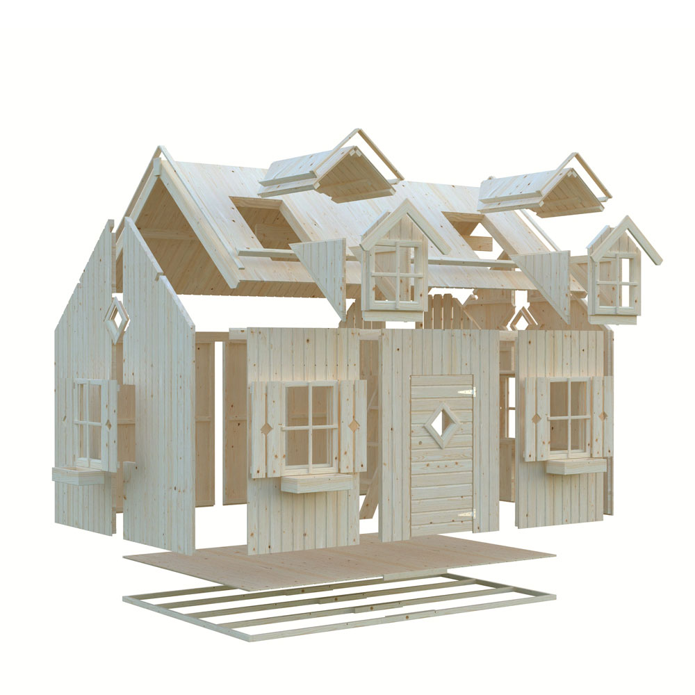 Marie är en vacker och lättmonterad stuga med fina detaljer såsom fönsterkupor med plexiglas samt fönsterluckor och gulliga blomsterlådor. Den har även ett loft som är 1,5 m² stort. Mycket roliga lekar utlovas med andra ord.