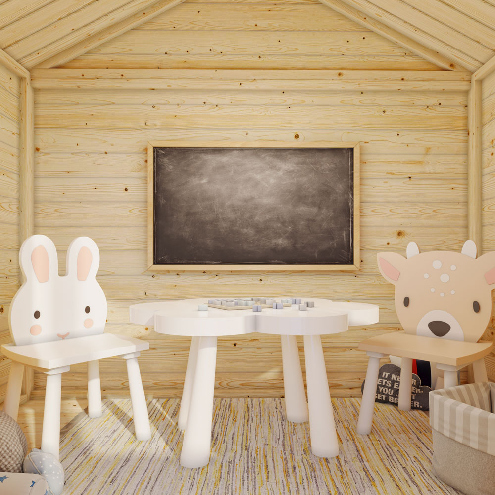 Här kan många olika lekar ta plats både inuti stugan och utanför vid gungorna. Även under går det att leka i skydd från solen. Endast fantasin sätter gränser.