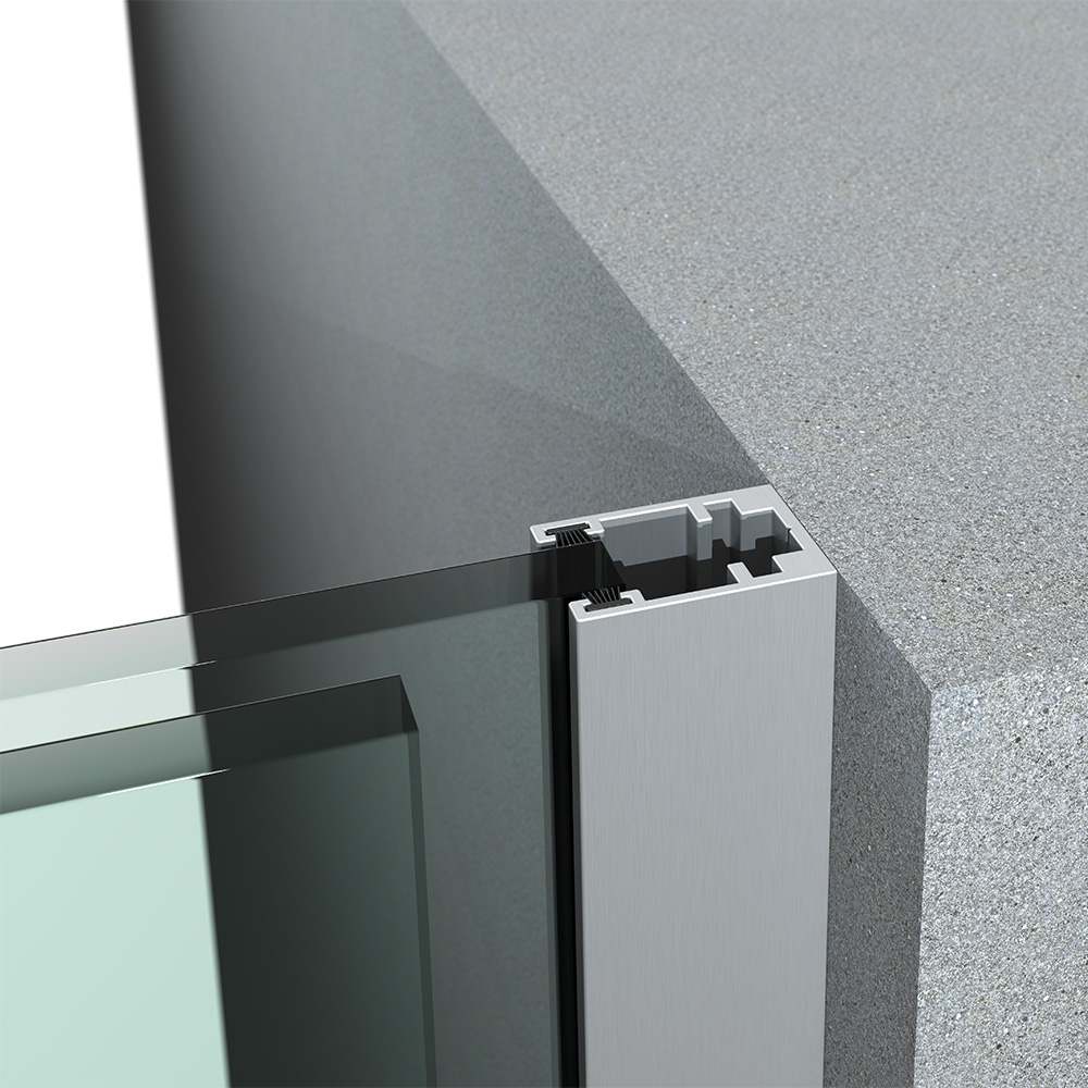 Väggprofilen är designad för en enkel och nästintill osynlig fastskruvning och ger en säker och stabil parkering av glasdörrarna. De glider stabilt och exakt in i väggprofilen där de sedan sitter stabilt.