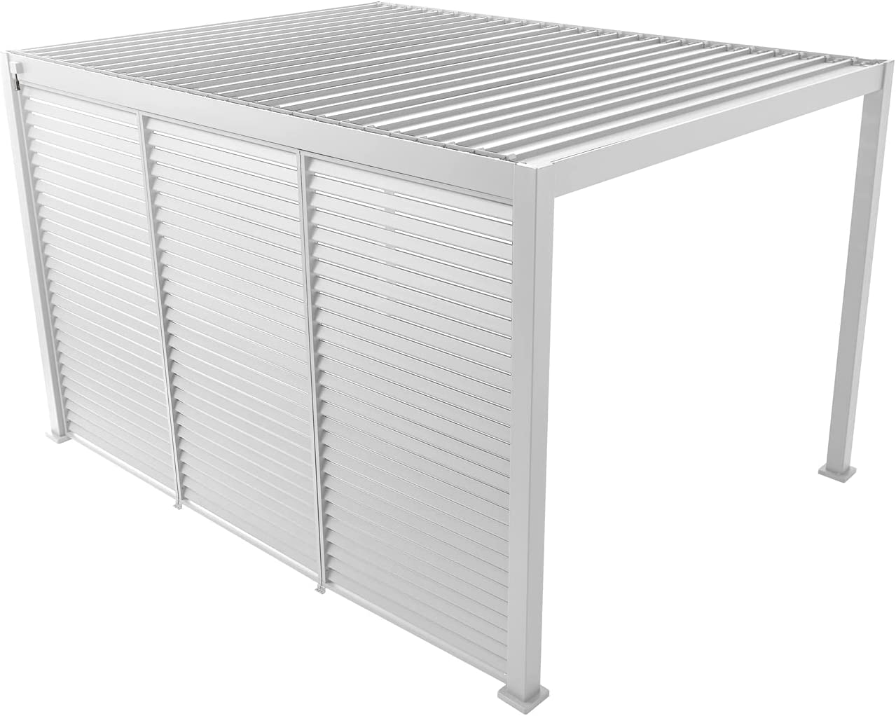 Det går att fästa skärmväggar på tre av sidorna på din pergola. Sidan med takveven är inte anpassad för detta tillval. På varje vägg passar 3 stycken skärmväggar i bredd och du väljer vilken bredd skärmen skall ha utifrån pergolans mått.