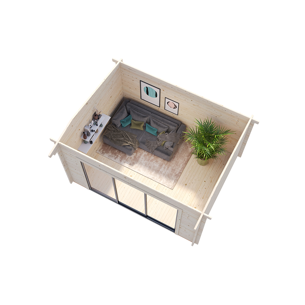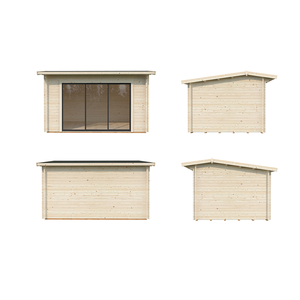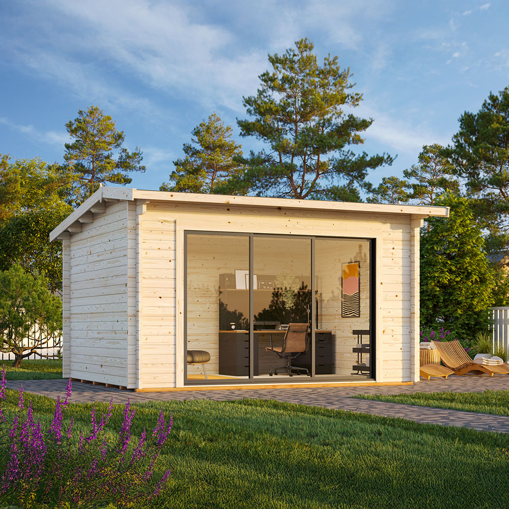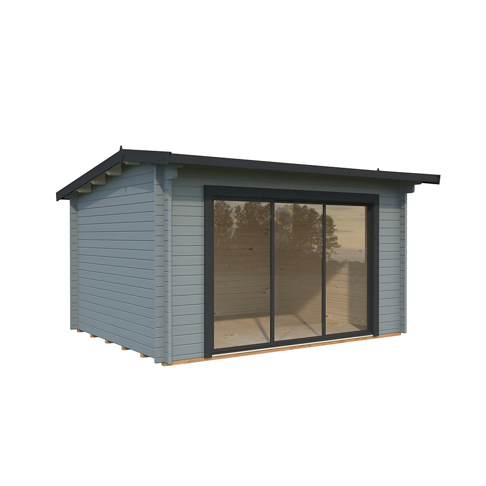 Stugan Ines har generösa skjutdörrar som gör att du verkligen kan öppna upp och släppa in ljus och ljud från din omgivning till stugan. Den moderna stugan är tillverkad av nordisk gran och levereras med äkta glas och fina detaljer.
