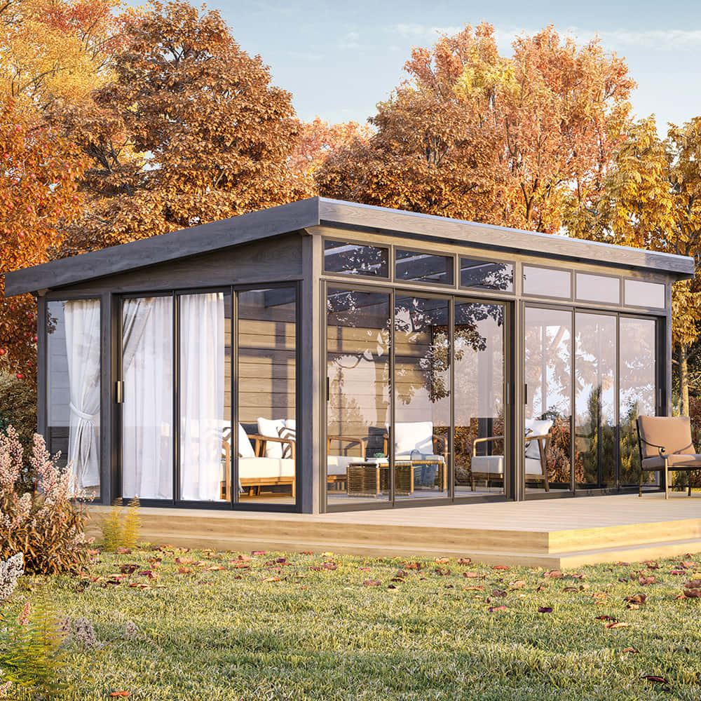 Kolding finns i fyra storlekar mellan 14,5 m² och 24,5 m² som passar bra ihop med många olika husstilar och trädgårdar. Det bakåtlutande taket och en extra fönsterrad gör att du får en härlig rymd och ett fantastiskt ljusinsläpp.