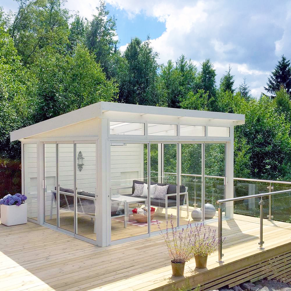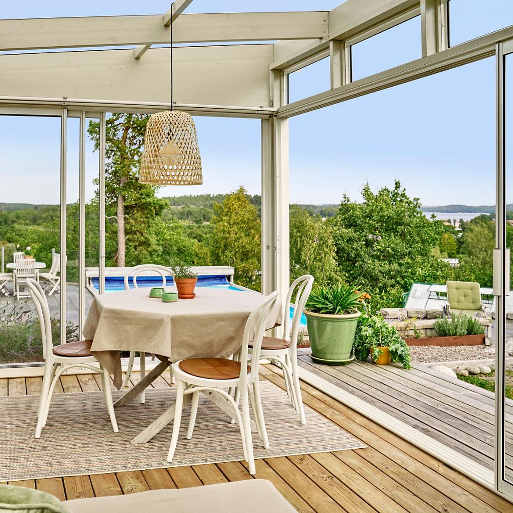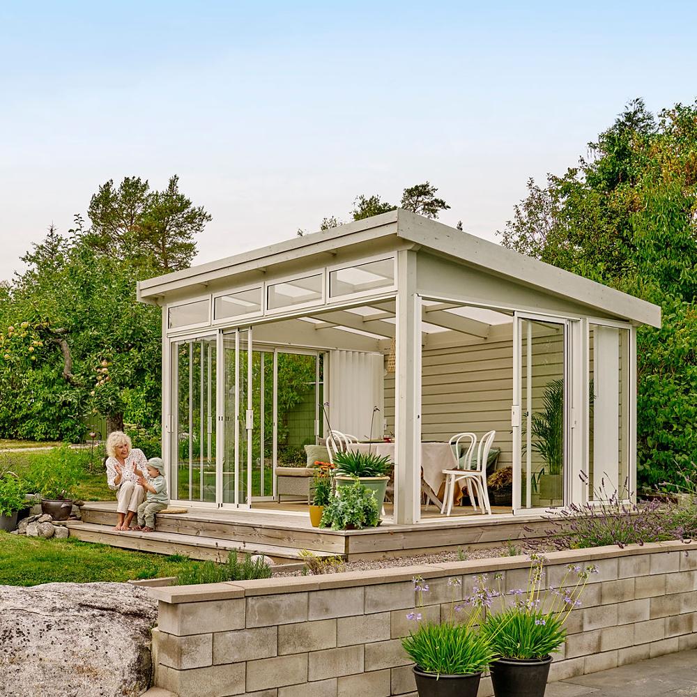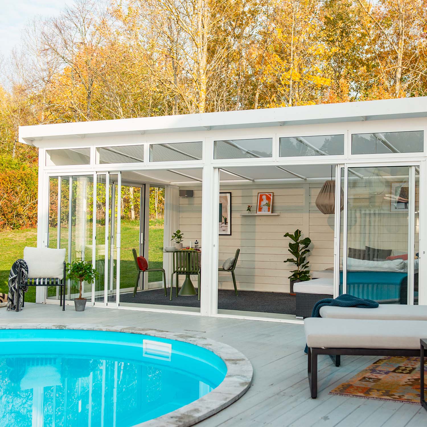 Det optimala valet för dig som är ute efter ett uterum anpassat för det svenska sommarhalvåret. Uterumspartier: Optimal skjutdörrspartier Tak: 10 mm kanalplasttak