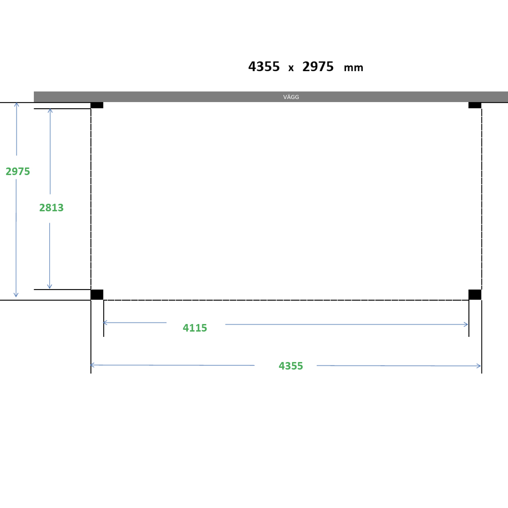| Bredd x djup stomme (mm) | 4355 x 3175 |