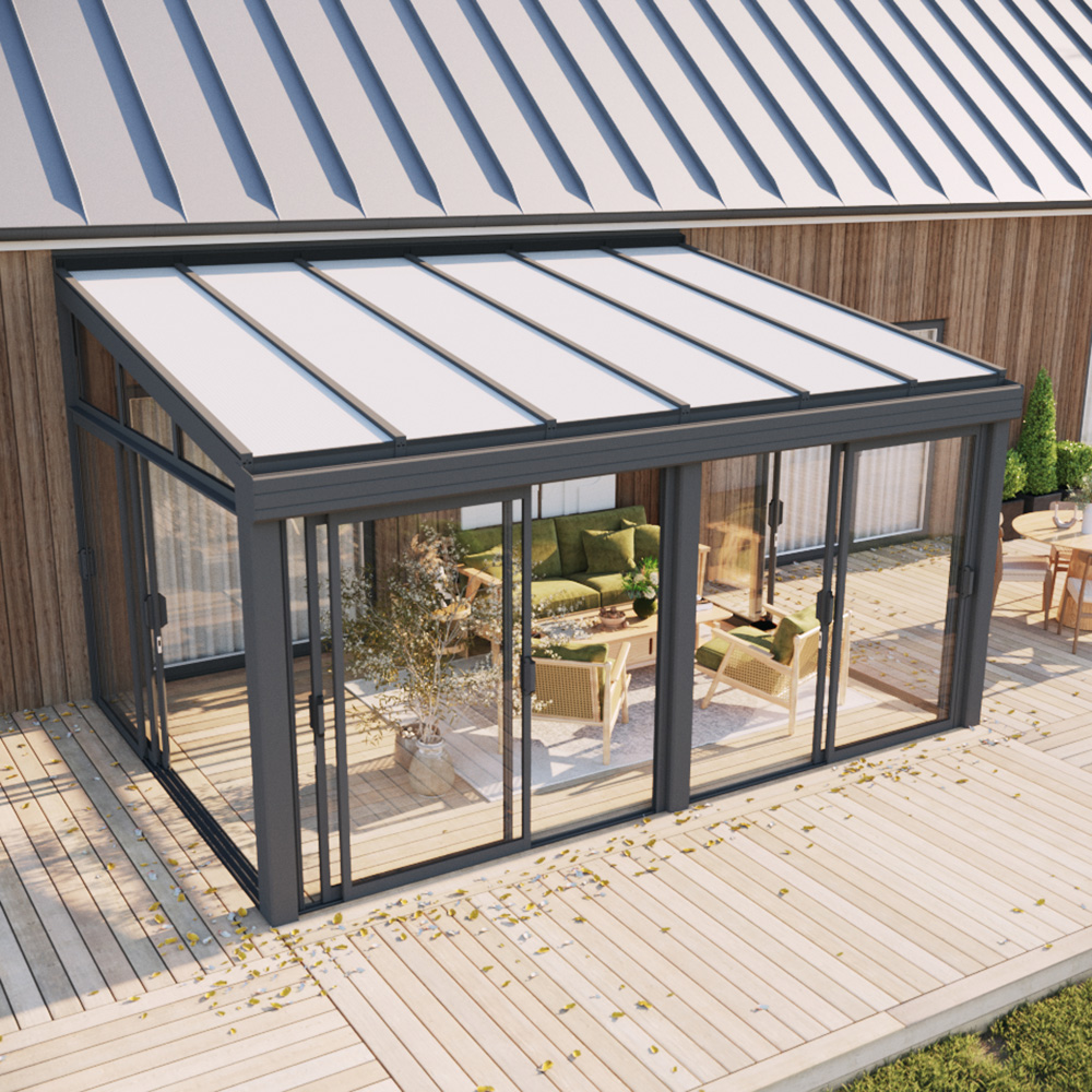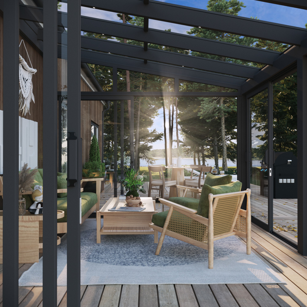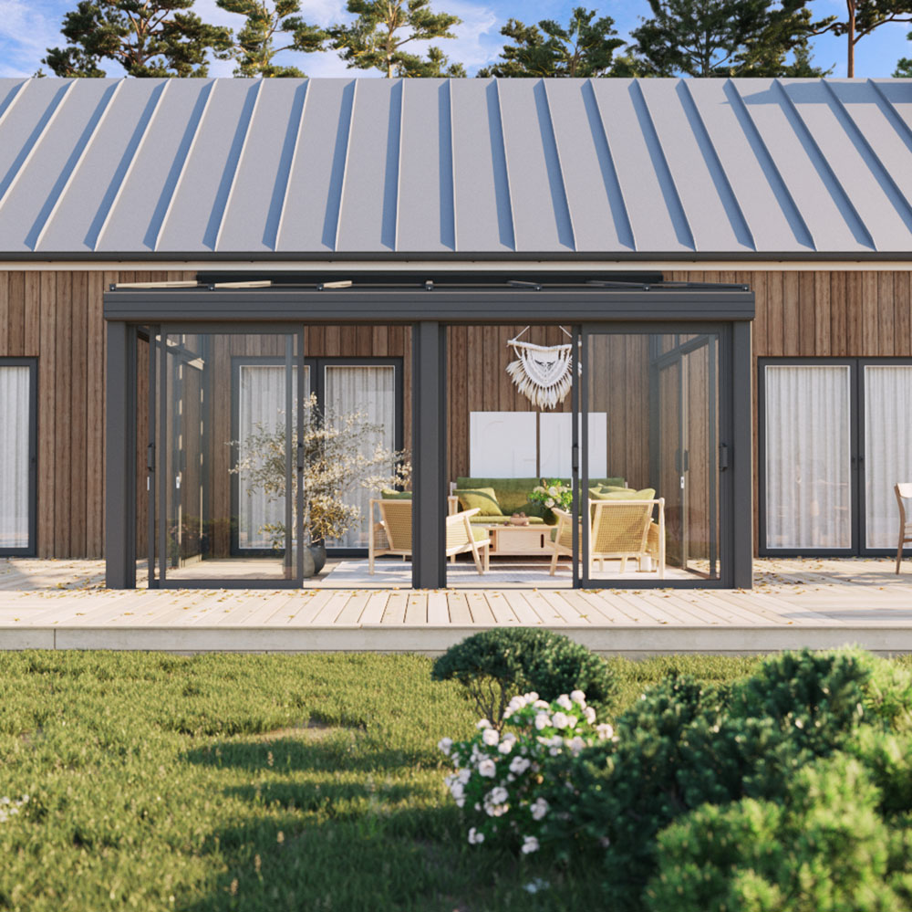 Välj mellan tre kulörer som passar ihop med den svenska, exklusiva designen. Se till att ditt val passar både den stil du tycker om, huset det ska monteras mot och trädgården som omgärdar uterummet.