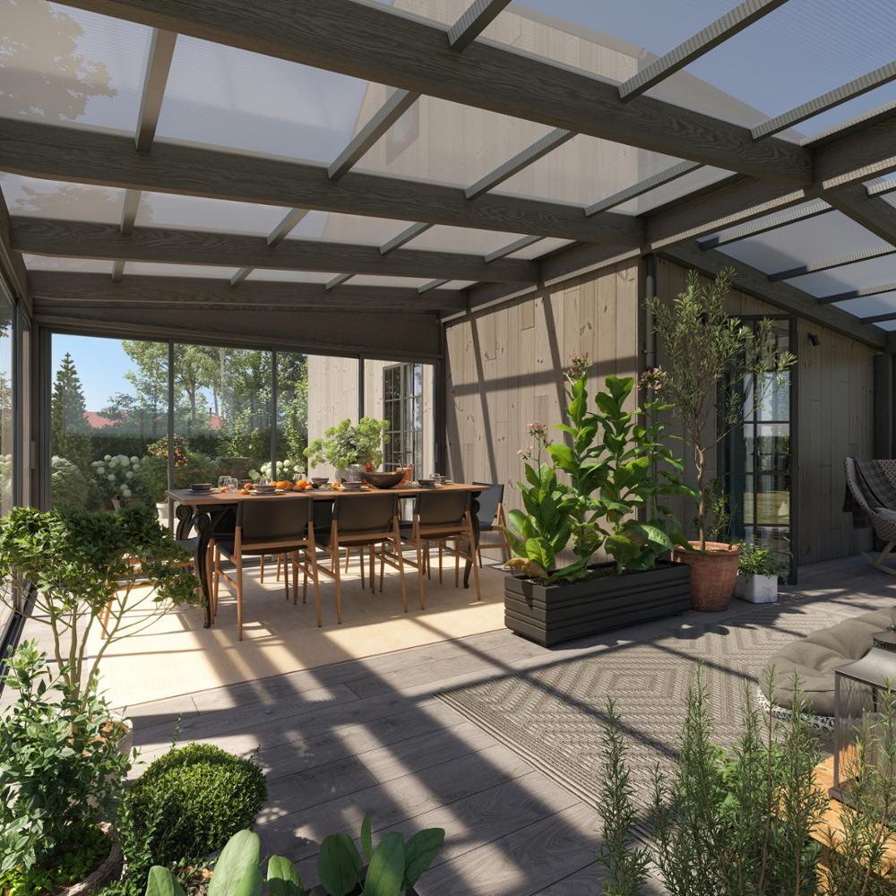Här får du glaspartier från vår serie Sommar Optimal som kommer allra mest till sin rätt under det härliga svenska sommarhalvåret. Kanalplast taket kommer i 10 mm tjocklek.