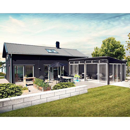 Välj vilken bredd och djup som du önskar på din uterumsstomme. OBSERVERA: Måtten som anges är yttermått stolpar.