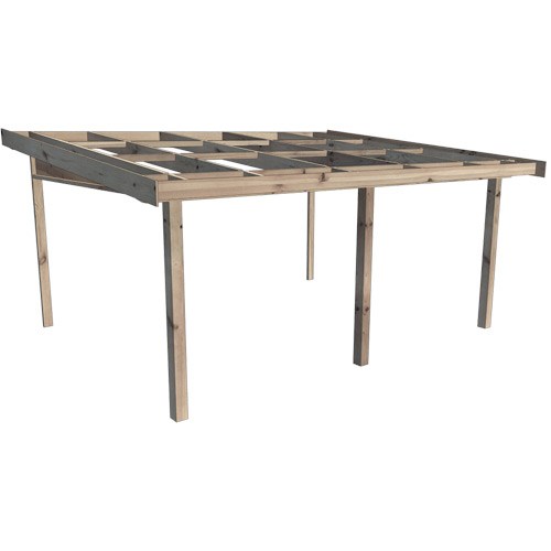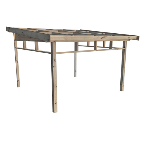 Vi har många okapade uterumsstommar att välja mellan. De består av okapade delar i limträ och monteringsbeslag som kapas till önskade mått.