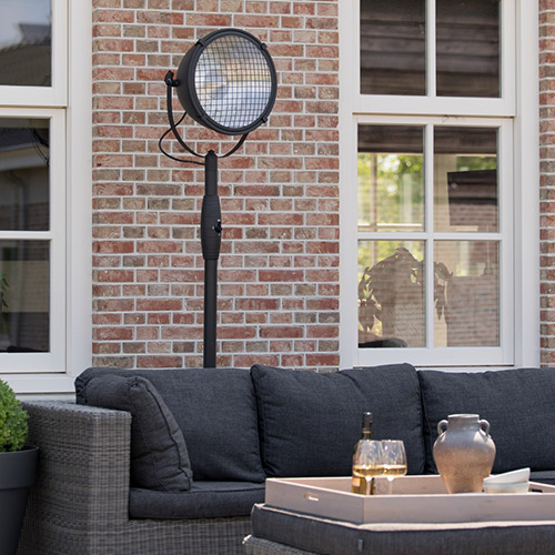 Lampan har en stilren design och går att rikta uppåt eller neråt beroende på vart värmen behövs.