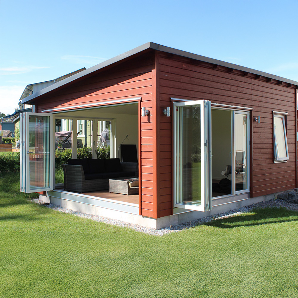 Dessa vikbara dörrar för uterum passar hela året om och klarar kontinuerlig underhållsvärme på omkring 10 grader. När vintern är över öppnar du enkelt upp och släpper in frisk sommarluft i uterummet. Finns i två varianter - helt i trä eller med aluminiumbeklädd utsida som har längre livslängd och inte behöver underhållas som en målad yta. De aluminiumbeklädda partierna ger dig material som är så nära underhållsfritt som du kan komma.