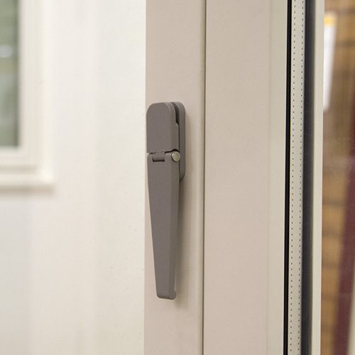 Isolerkassett med säkerhetsglas tillsammans med brutna köldbryggor i dörr, karmsidor och räls.