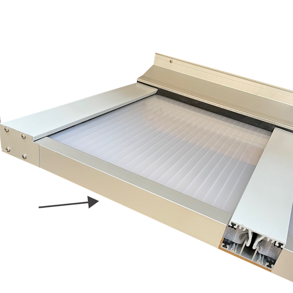 Skivorna kapas enkelt både på längden och bredden med en vanlig fintandad fogsvans. Kortlingar skall användas för att klara eventuellt snötryck. Om skivan kapas på bredden tillse då att du får en mellanvägg i skivan som stöd för täcklocket. Detta kan innebära att du behöver kapa lika mycket på båda sidor. Kontakta oss om du ska göra en speciallösning så hjälper vi dig få med alla profiler och tillbehör du kan behöva.