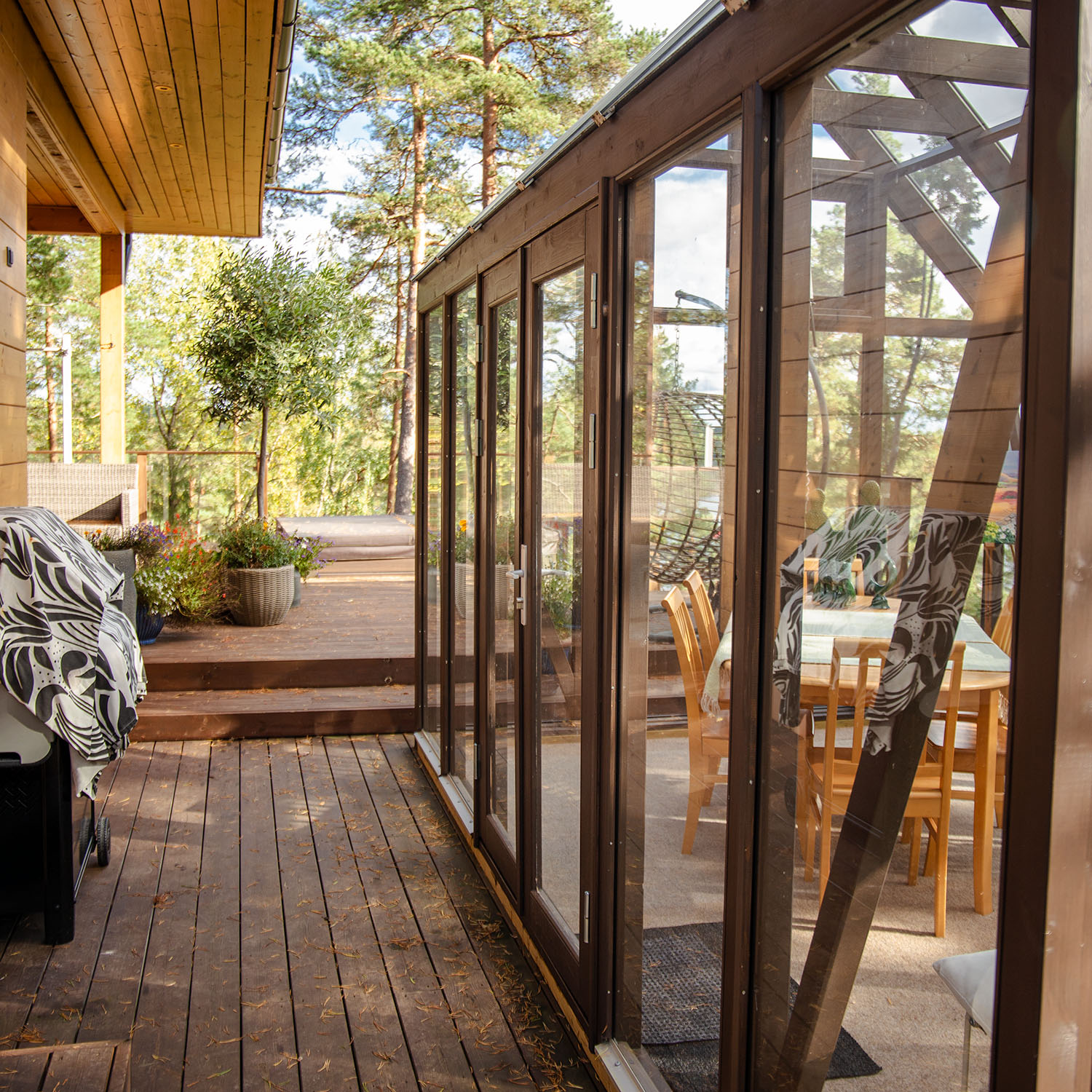Glaslisten runt alla glasskivor i väggarna har en ny rundare form för snyggare utseende och är kraftigare för att den inte ska spricka efterhand som träet torkar.