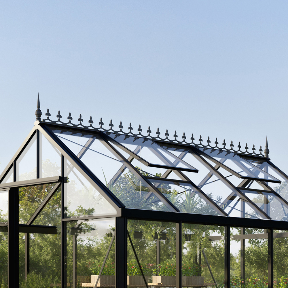 Gör ditt växthus mer personligt och elegant med en klassiskt vacker takdekoration som enkelt fästs på nocken. Det hindrar även fåglar från att slå sig ner vilket minskar nedsmutsningen på taket.