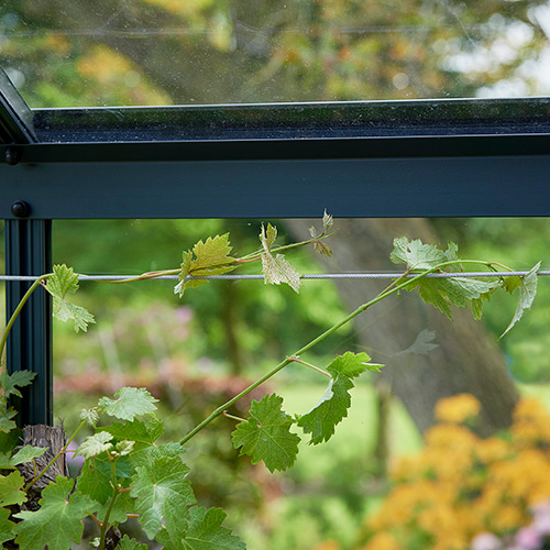 Häng upp skuggande gardiner i ditt växthus eller låt dina klätterväxter slingra sig runt vajrarna.