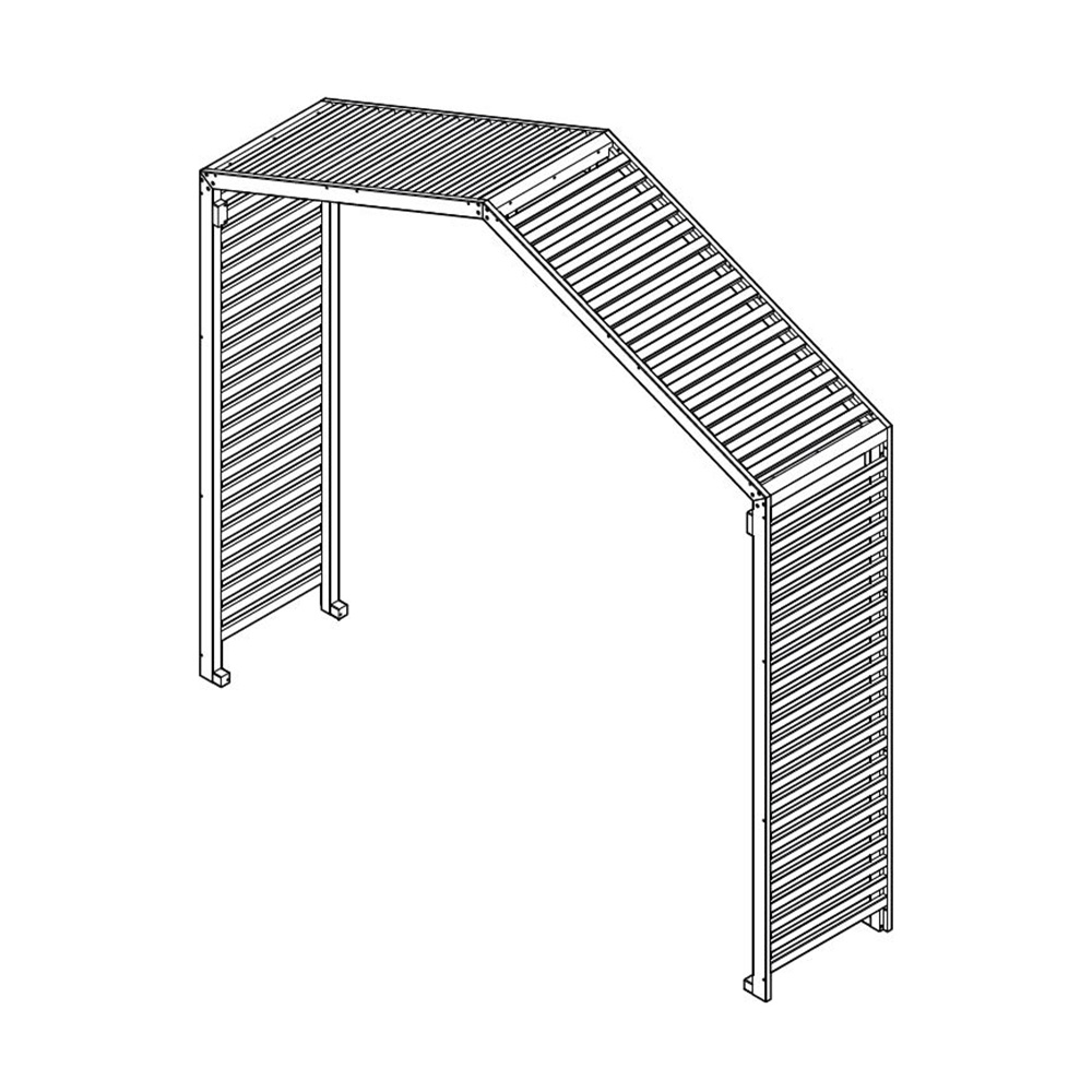 Solskyddet är lätt att montera. Det levereras i fyra hela stycken som monteras ihop med kraftiga vagnsbultar. Har du köpt flera solskydd kan dem fästas ihop med varandra. Hela konstruktionen vilar på ställbara fötter samt en infästning i växthusets kropp. Täcklock av trä gömmer synliga skruvskallar och skapar ett stilrent helhetsintryck. Du kan komplettera med vårt insynsskydd för Linnea träväxthus som placeras på växthusets gavel.