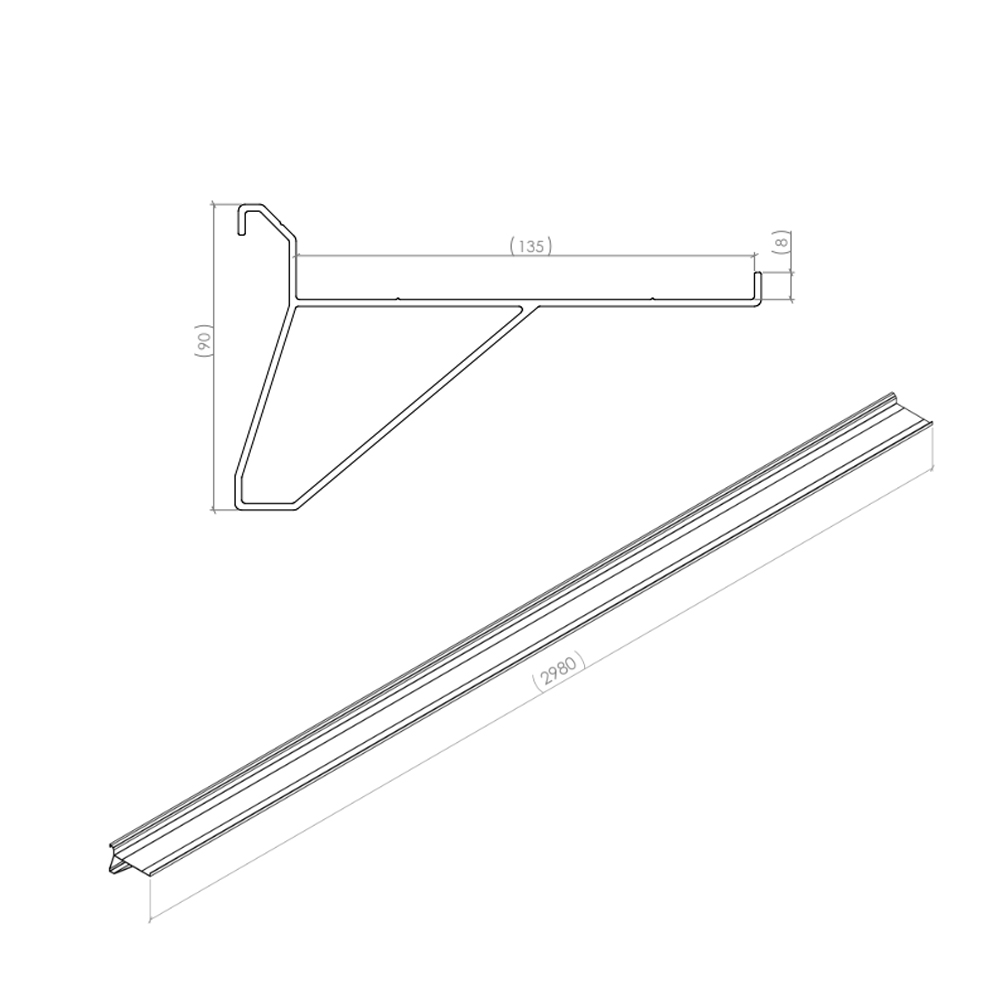 Hyllan finns i två längder. Denna längre variant täcker bredden av FYRA vägglas. Det betyder att den långa hyllan passar perfekt även på växthusets kortsida. (Den korta hylla täcker bredden av ETT vägglas.)