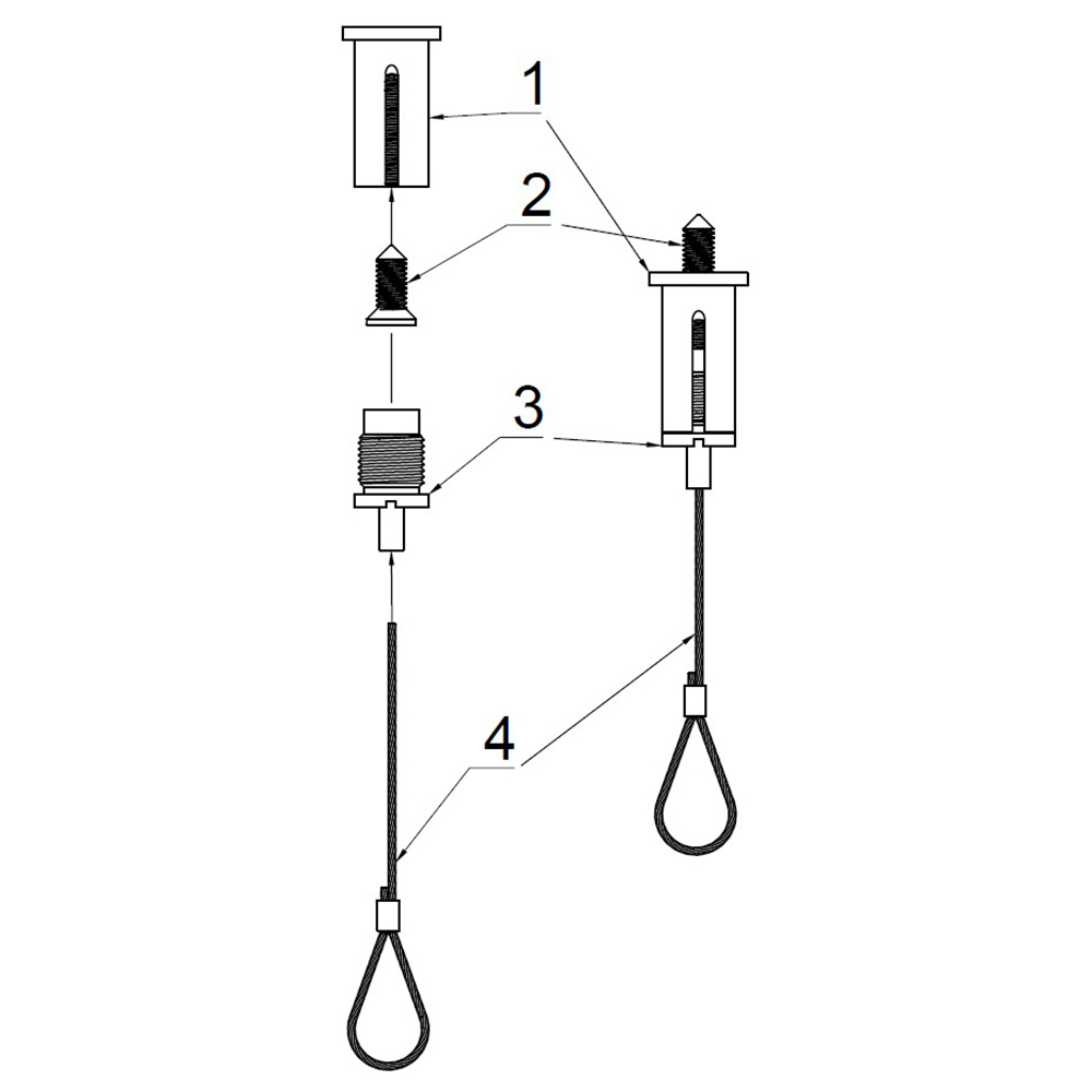2 st vajrar i rostfritt stål på 2 meter med ögla samt 2 st träskruvar.