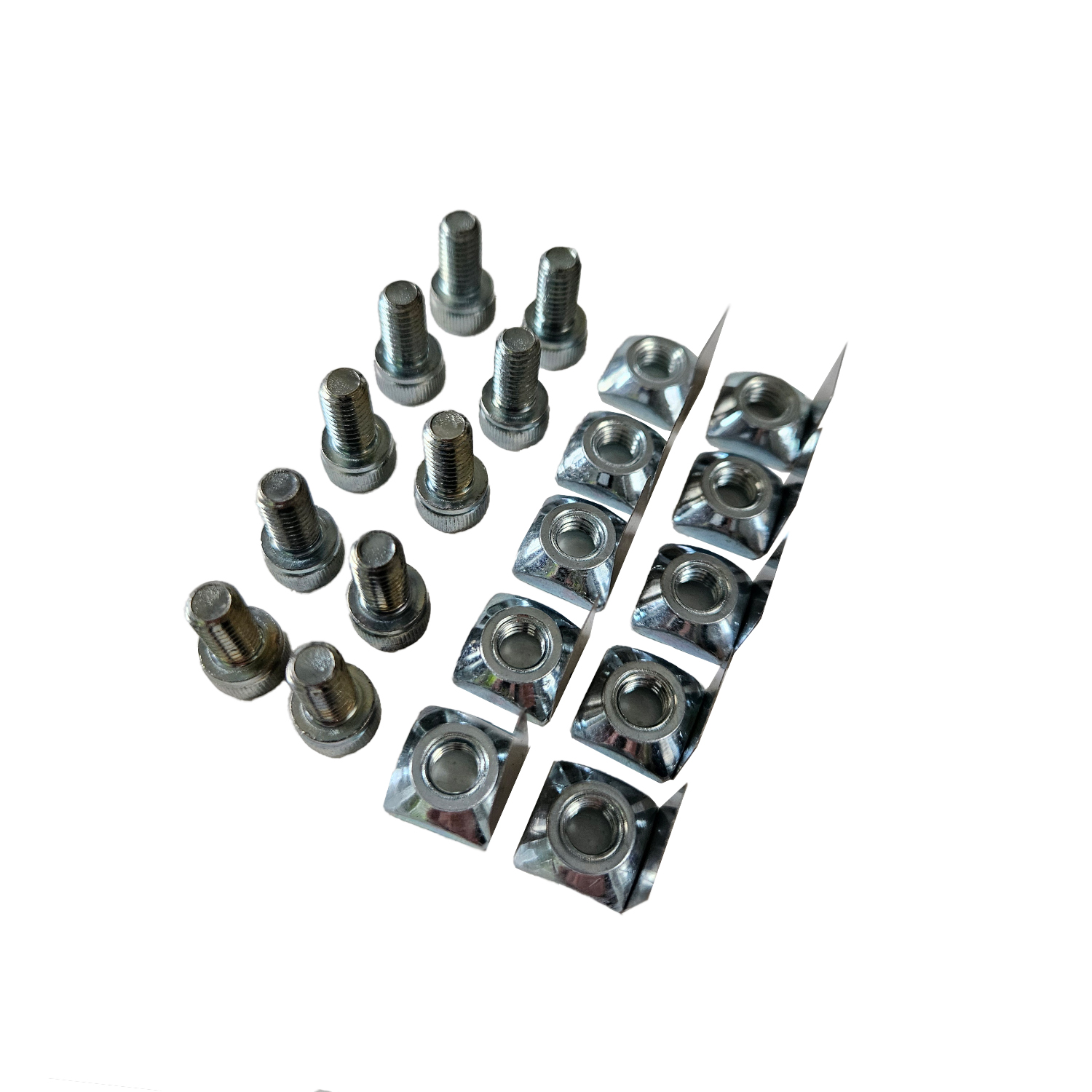 I detta set ingår 10 st skruvar M6x16 (insex) och tillhörande Zmartmuttrar (M6 mutter med fjäderbricka).