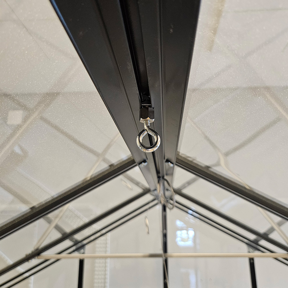 Praktiska öglekrokar som ger möjlighet till upphängning av växter och annat i ditt växthus.