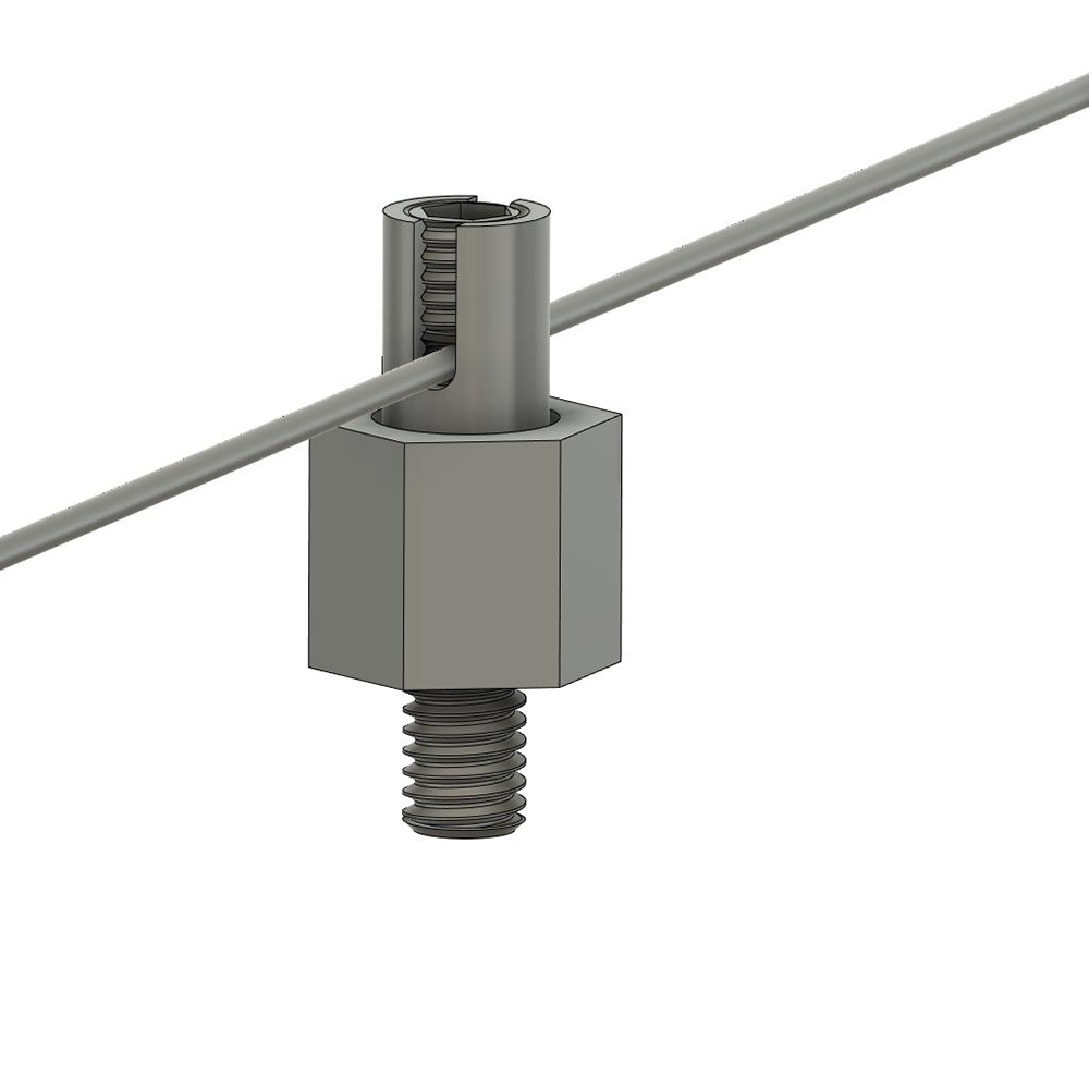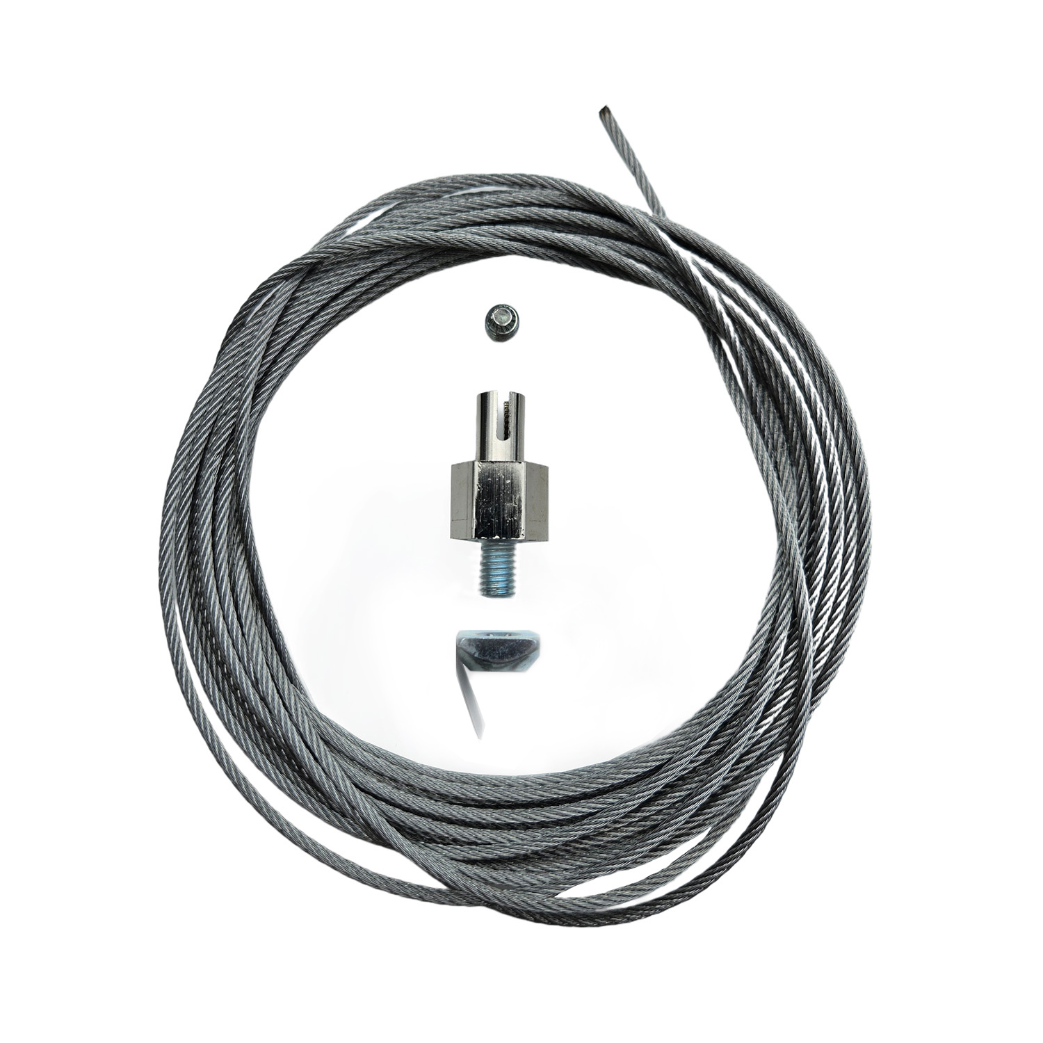 I detta set ingår 1 st 5,5 m lång vajer, 8 st Klämskruv M6 med slits och tillhörande Zmartmuttrar (M6 mutter med fjäderbricka).