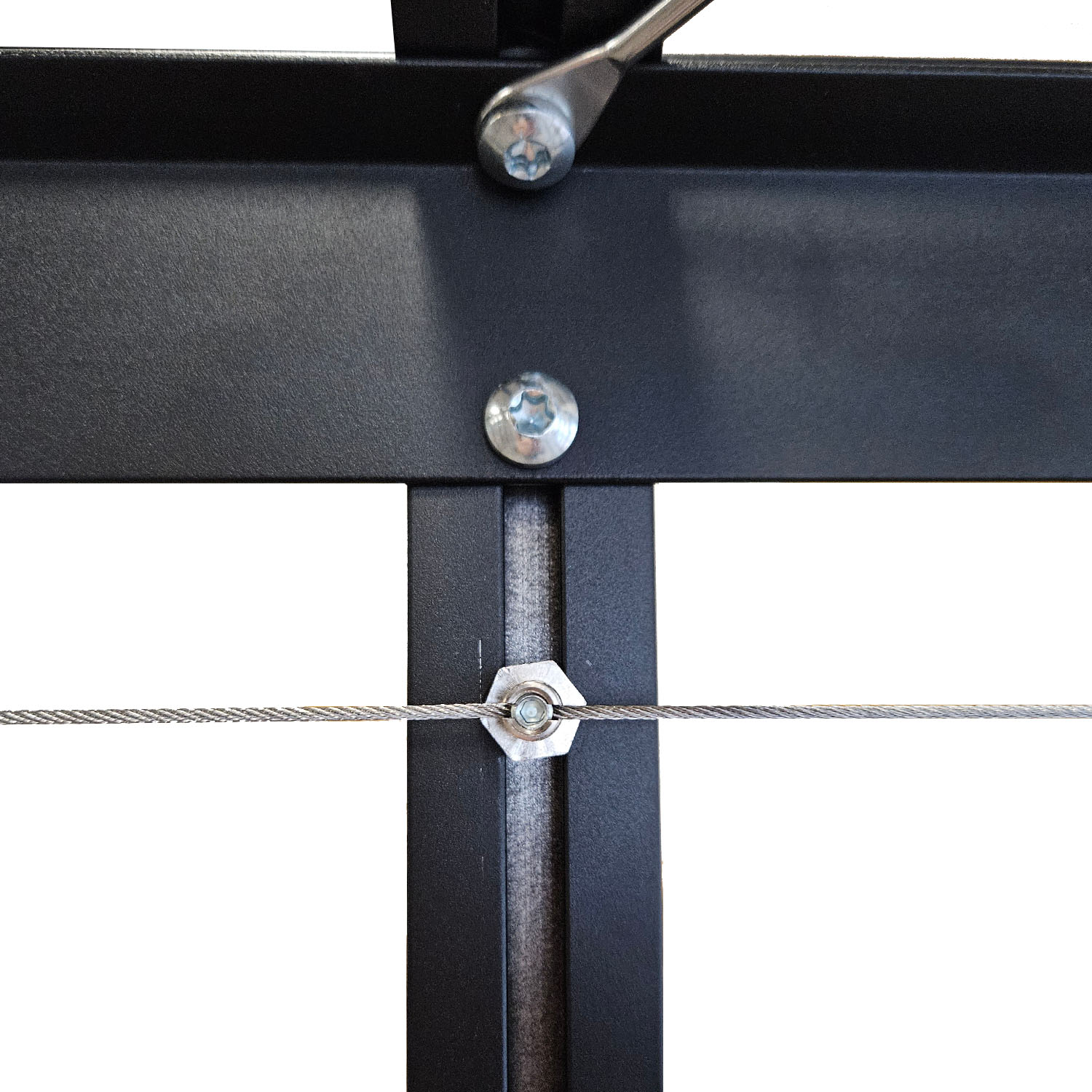 Den 5,5 meter långa stålvajern går smidigt att fästa i samtliga funktionsspår (tak/sidor) i växthuset med hjälp av medföljande zmartfunktionsmuttrar och passar en fullängd till alla våra modeller av Dahlia.