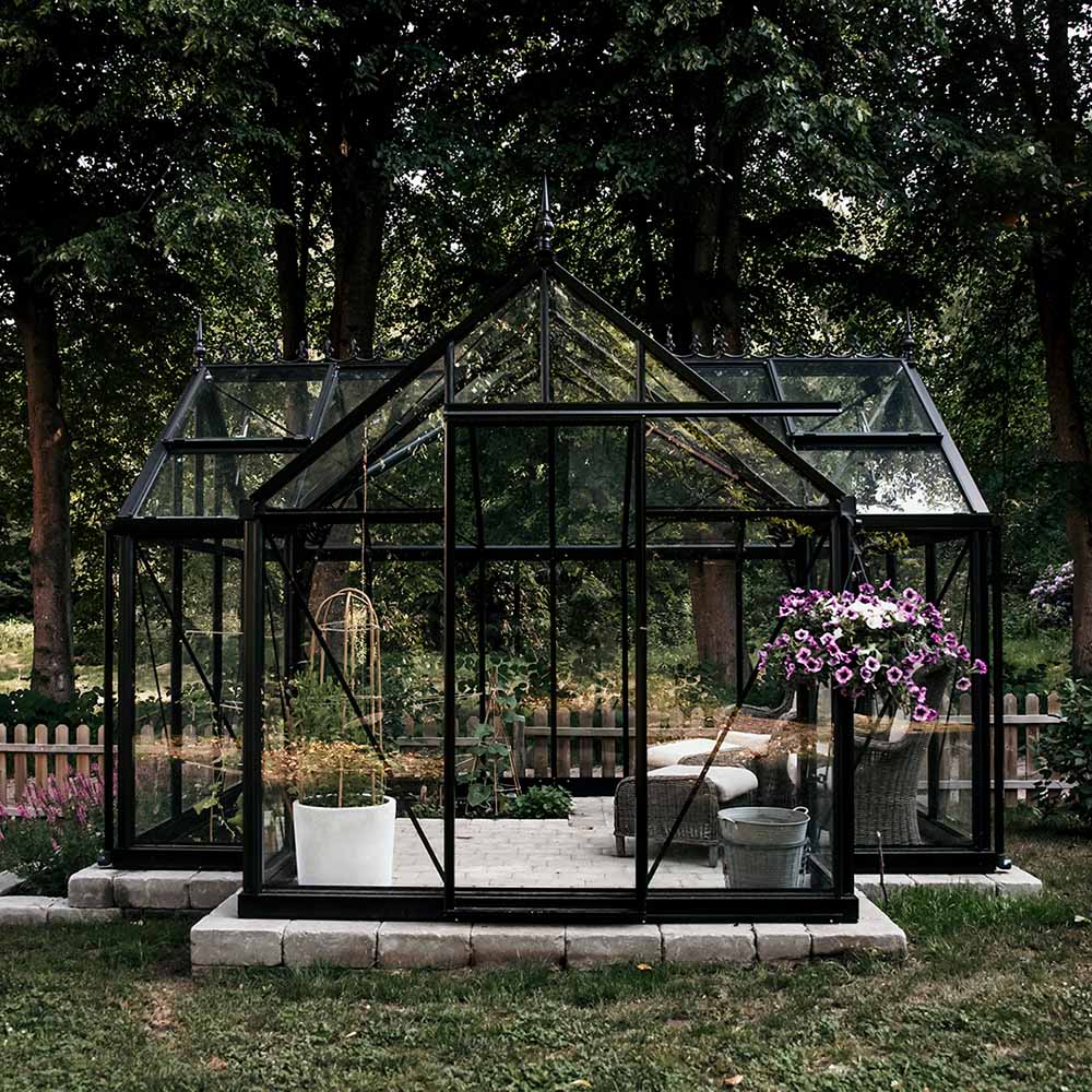 Nuuksio Orangeri är vår mest exklusiva, robusta och solida växthusmodell med starka och högkvalitativa aluminiumprofiler.