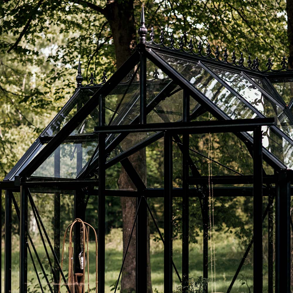 STIL Nuuksio Orangeri kommer med en svart pulverlackering. Nockdekorationen ingår inte utan är ett tillval.