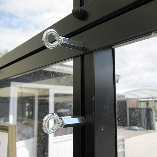 Säkerhetsglaset är 4 mm och har gummilister för optimal vatten- och vindtätning. Smidiga skjutdörrar gör att du lätt går in och ut. Beslag, bultar och muttrar är i rostfritt stål och takrännorna är integrerade.