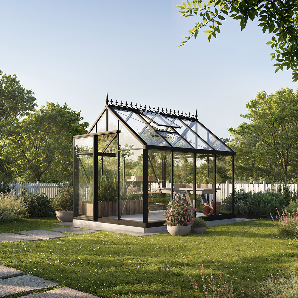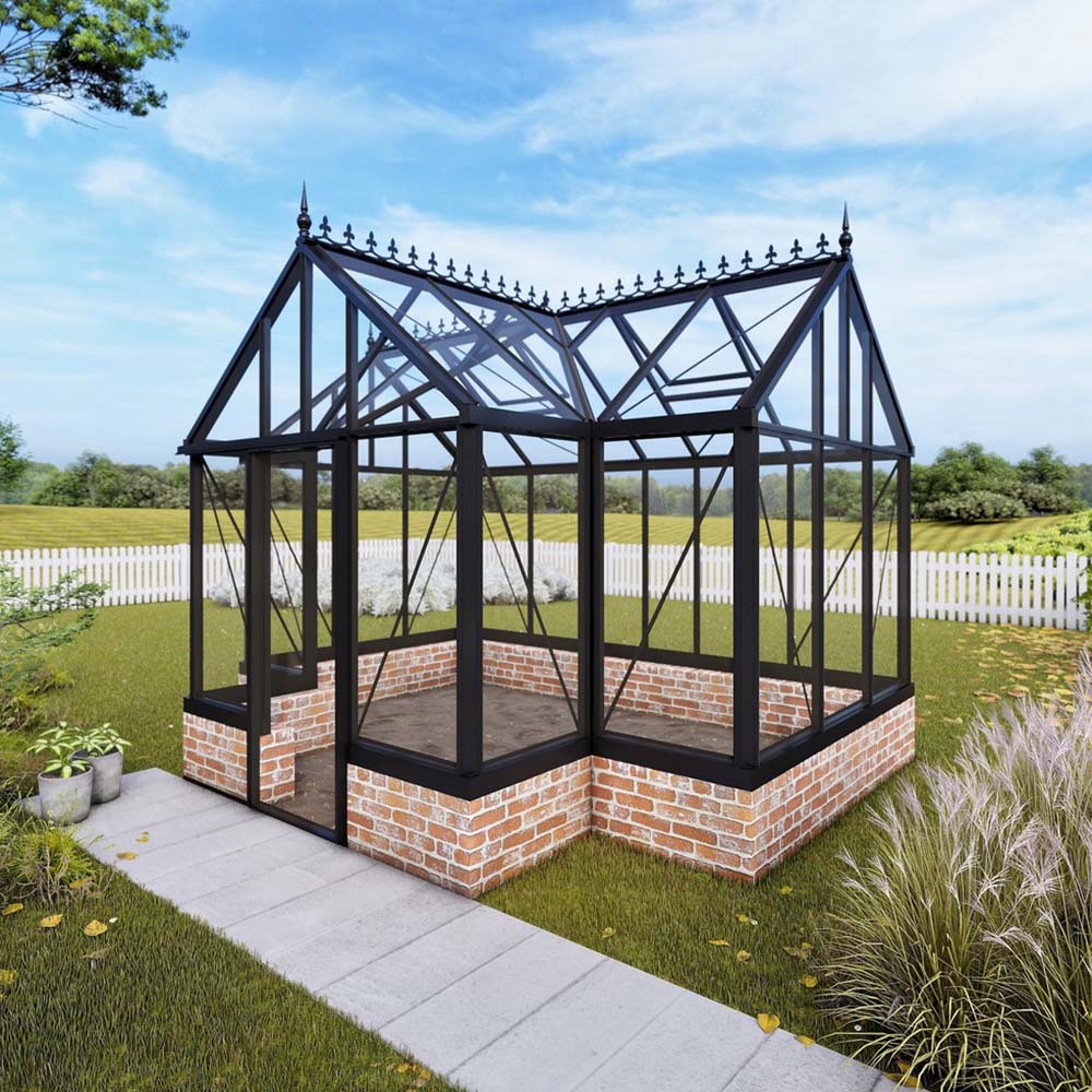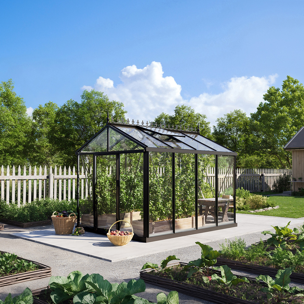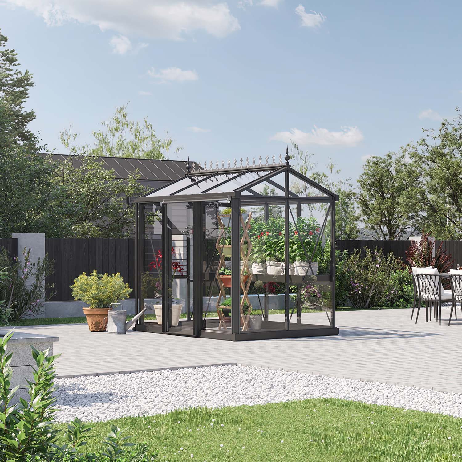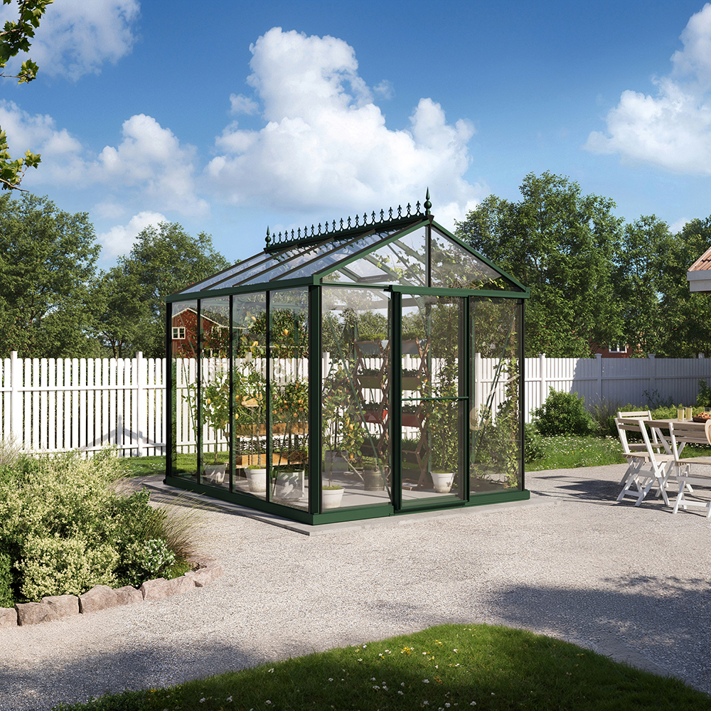 Nuuksio är vår mest exklusiva, robusta och solida växthusmodell med starka och högkvalitativa aluminiumprofiler. Nuuksio Orangeri mur finns i en storlek och har en gedigen konstruktion med ett maximerat utrymme. Totalhöjden är 296 cm vilket ger en imponerande rymd.