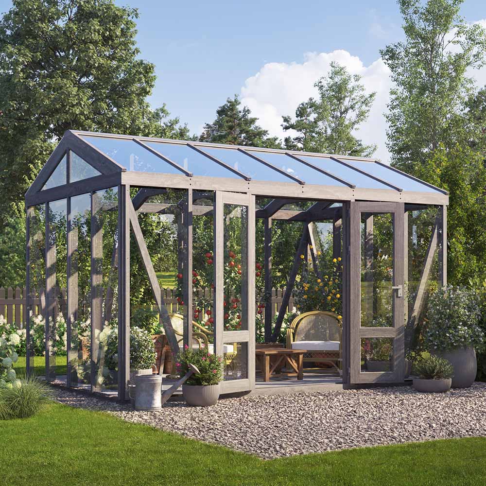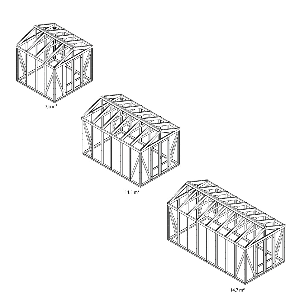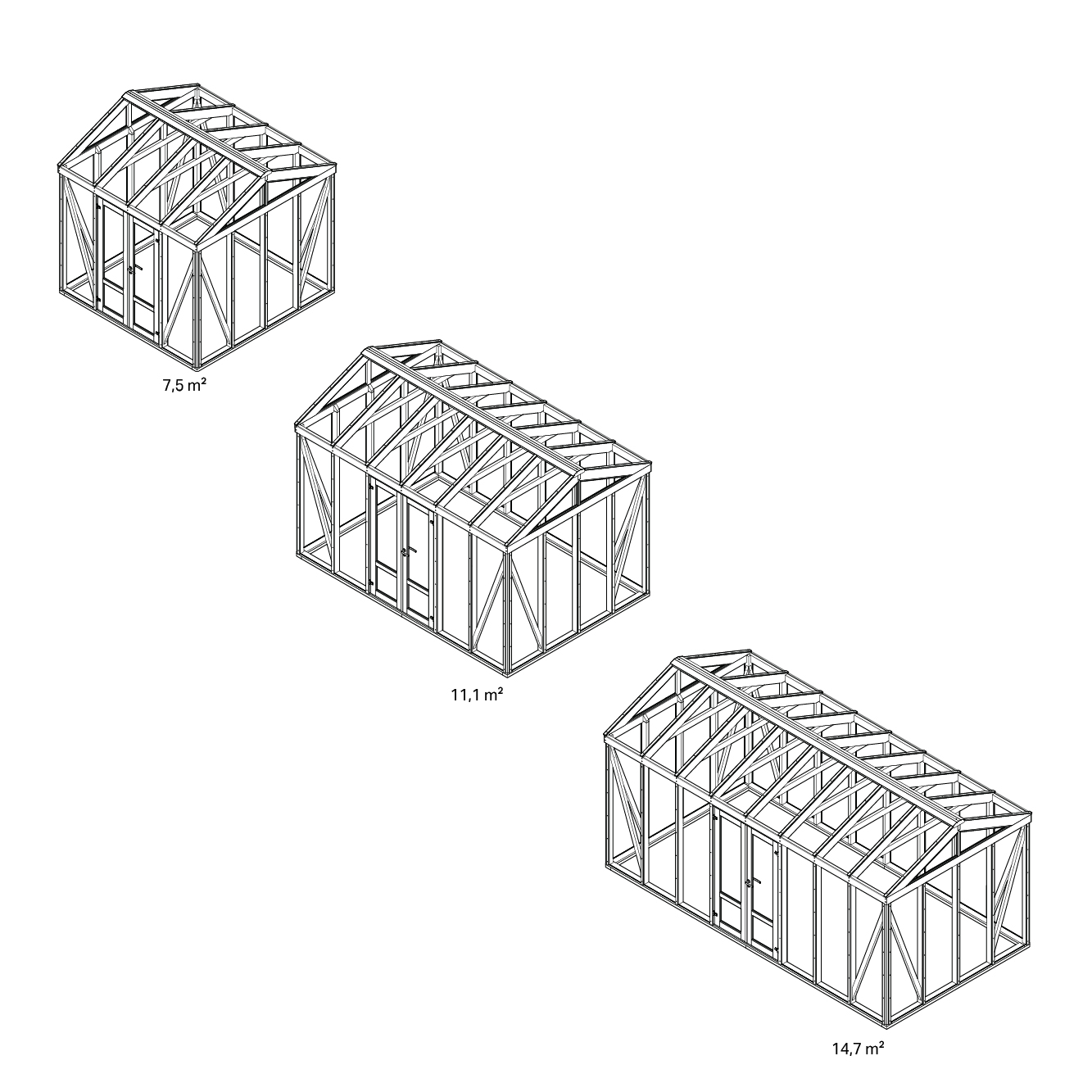Linnea har en härlig takhöjd, här kan dina tomatplantor och vinrankor växta fritt. Den smarta konstruktionen gör det möjligt för dig att välja var du vill placera växthusets dubbeldörrar, på långsidan eller kortsidan. Allt för att skapa just din speciella växthusdröm.