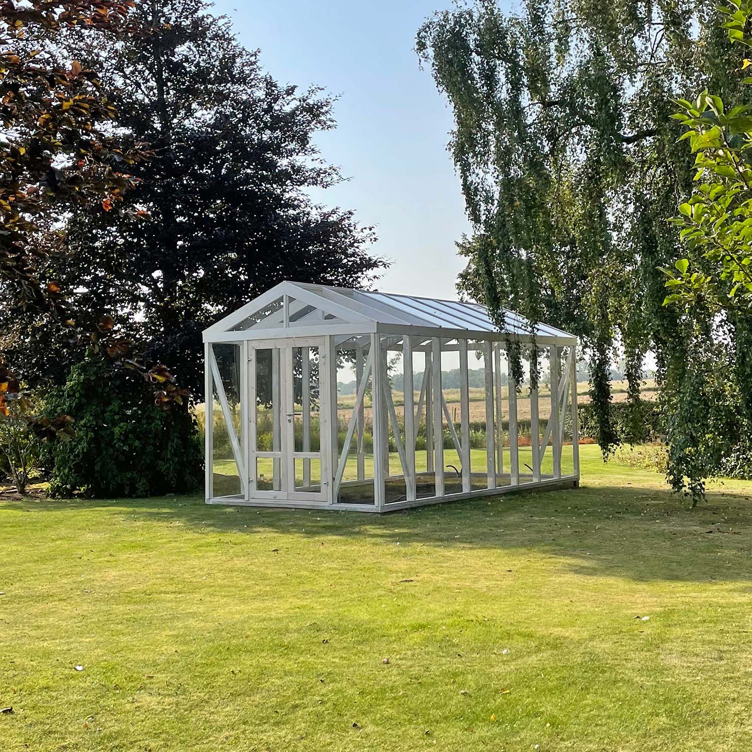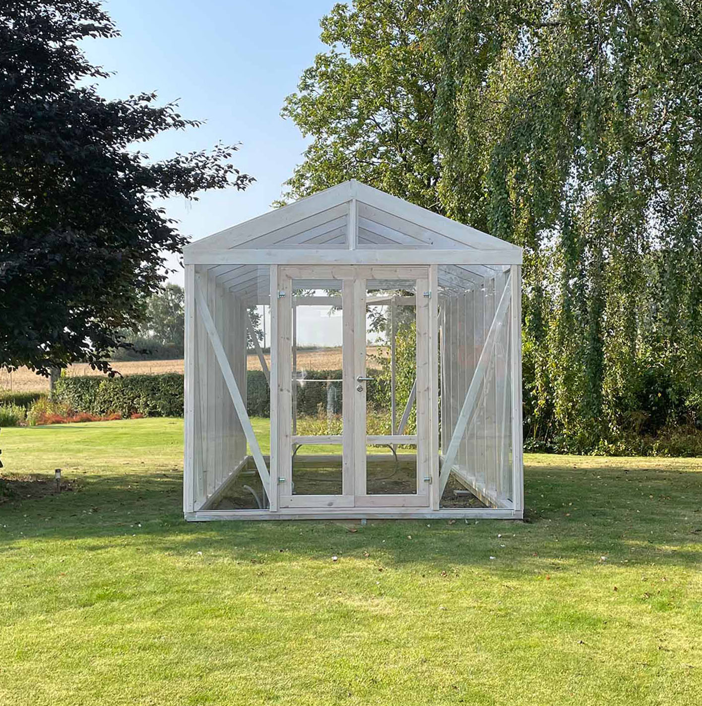 Ett växthus i trä kan verkligen bli ett med naturen och smälta in i din trädgård. Dessutom har du möjlighet att göra just ditt Linnea helt unikt genom att måla trästommen i valfri kulör.