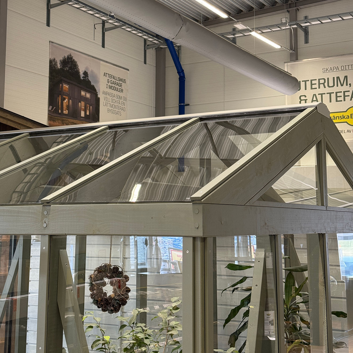 Detta växthus står stabilt, även i hårt väder. Vi är så säkra på kvalitén att vi ger dig som kund 6 års stormgaranti. Det innebär att om du får skador på ditt växthus, direkt orsakade av vindar upp till 32,6 m/s (övre gränsen för storm), så ersätter vi de delar på ditt växthus som tagit skada.