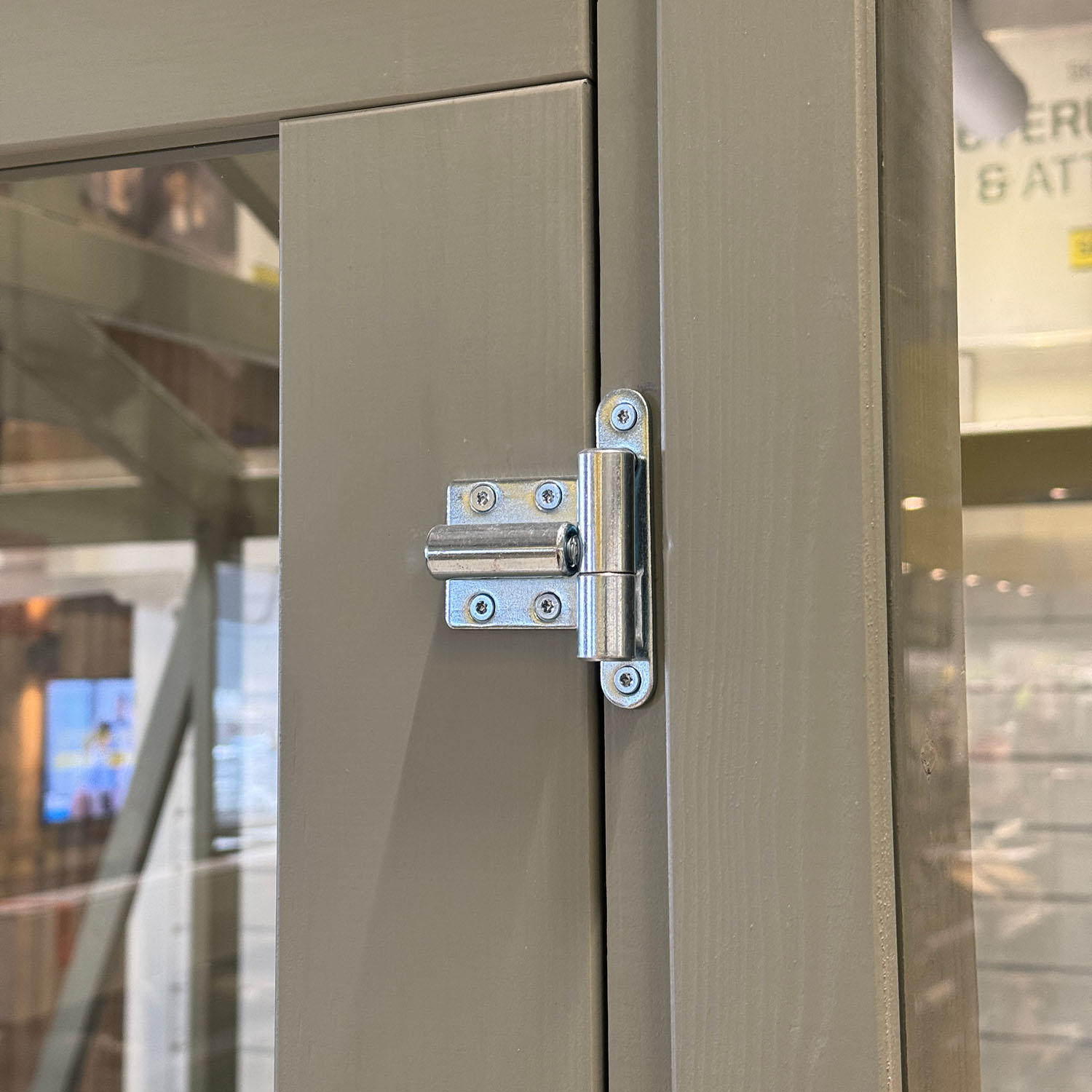 Med sin slimmade design får materialvalen verkligen ta plats. Linneas svensktillverkade trästomme är tillverkad av gran från de svenska skogarna och rutorna är av tåligt säkerhetsglas. Antalet delar som inte är av trä eller glas är minimalt vilket skapar ett vackert helhetsintryck. Växthusets robusta dubbeldörrar ger ett välkommande intryck och gör det enkelt för dig att köra in en skottkärra i växthuset. Dörrarna är försedda med ett låsbart handtag.