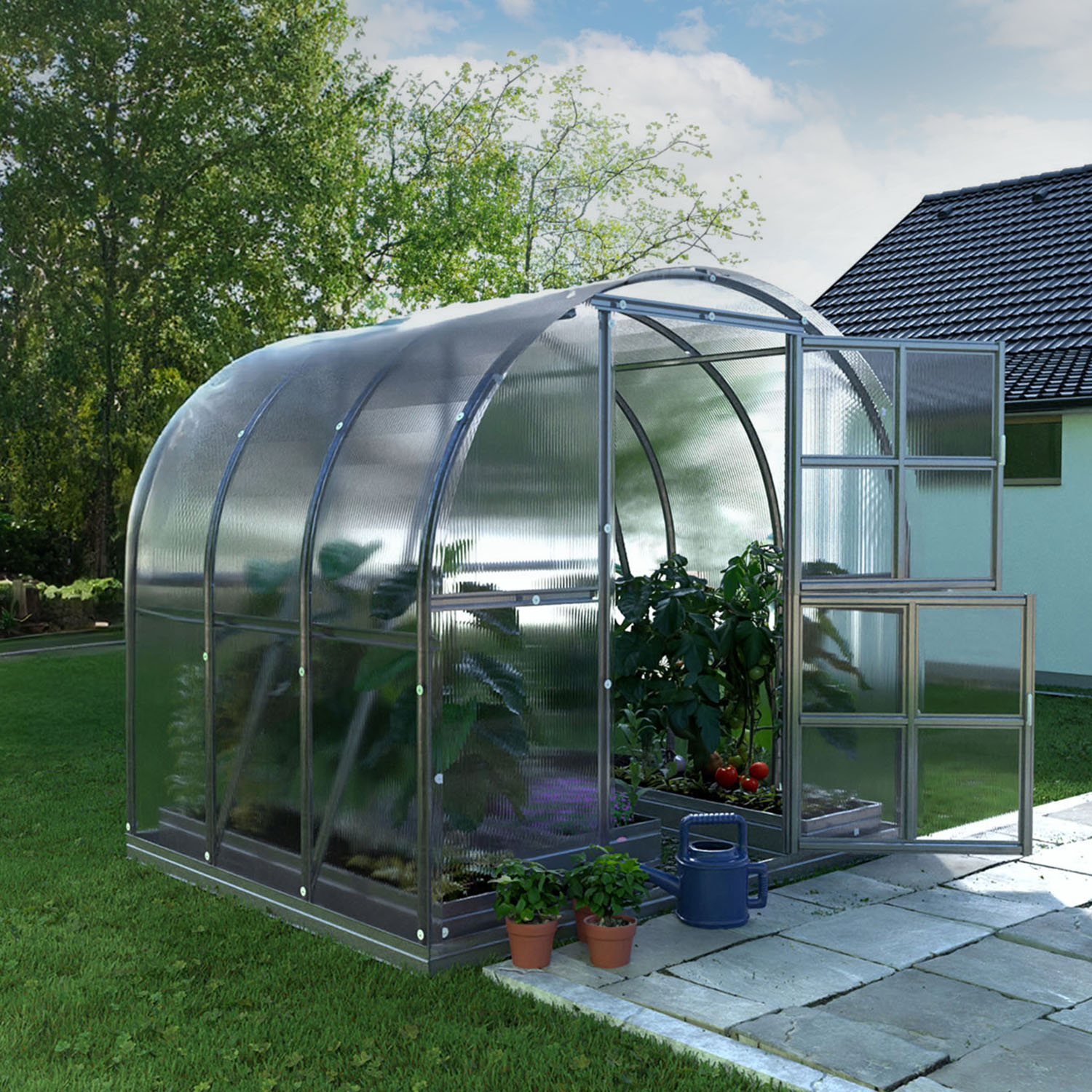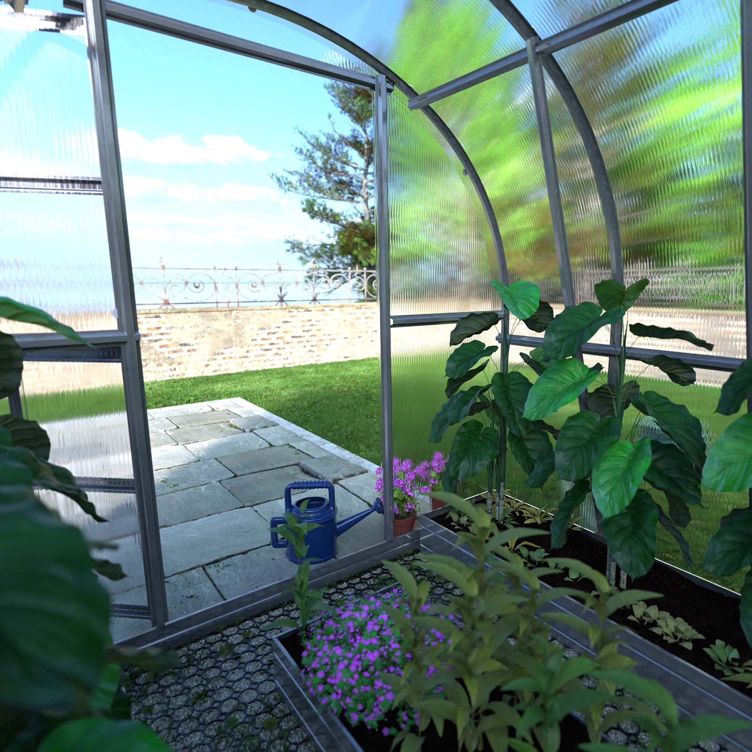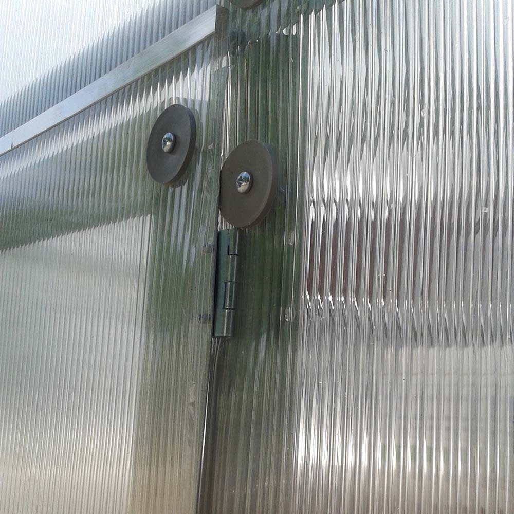 Tack vare sin genomskinliga polykarbonat med cirka 85 % transparens ger växthuset ett utmärkt solljus för din odling, och tack vare kanalplast med UV-skydd skyddas växter från farorna med direkt solljus. Kanalplasttak är det bästa alternativet för dina växter då det inte blir lika hett i växthuset som det kan bli med ett glastak.