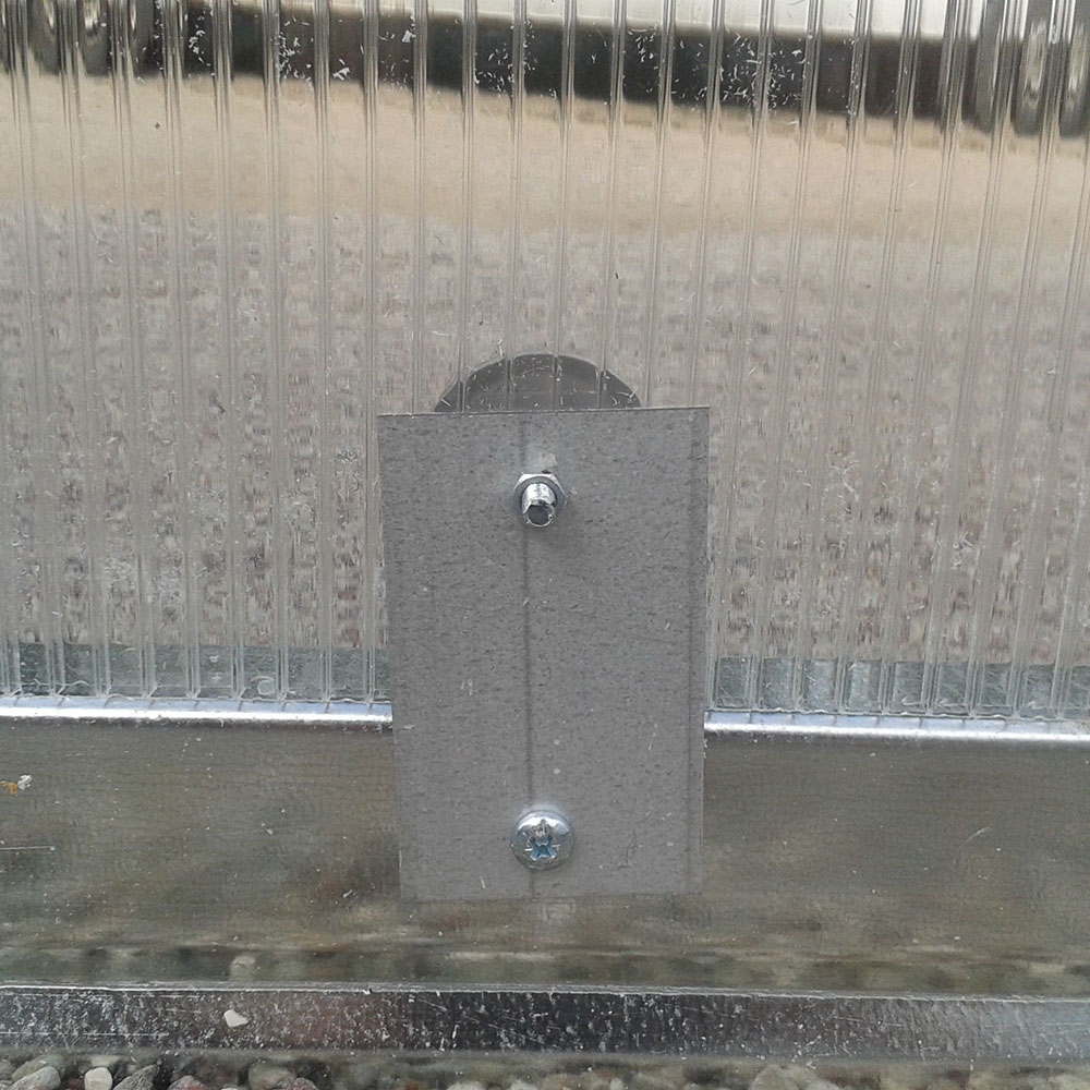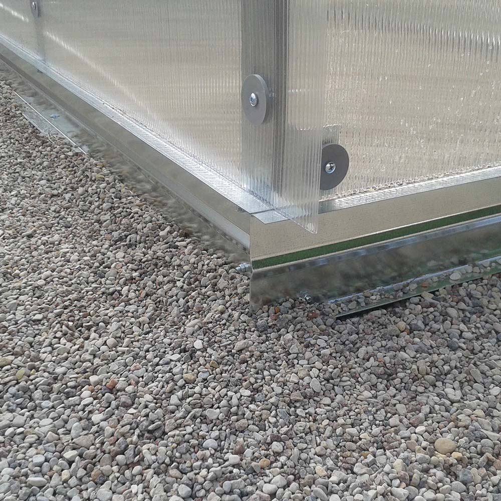 Sockel i galvaniserad stål som underlättar monteringen och gör växthuset stabilare och tätare.