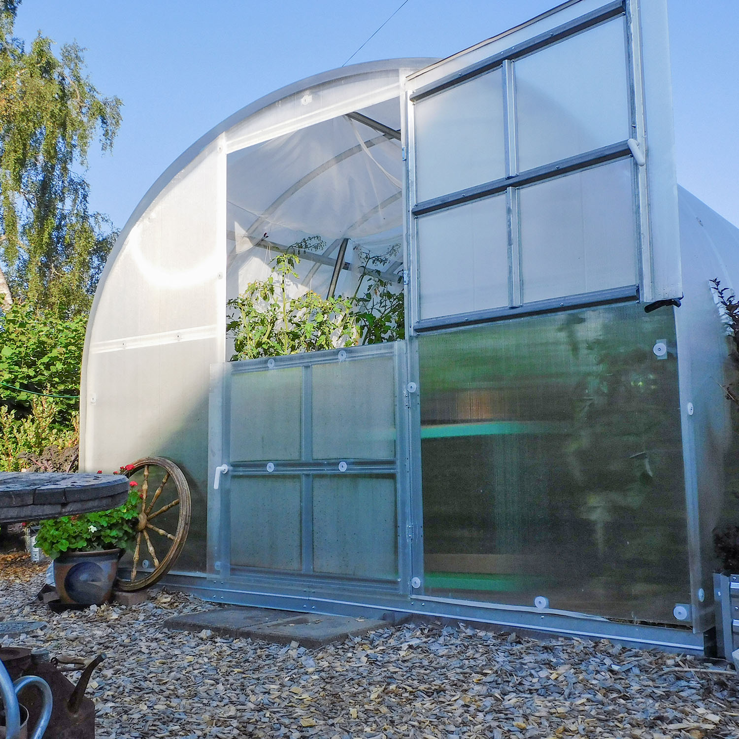 Vill du ha ett kvalitetsväxthus och värdesätter hållbarhet och funktion har du kommit rätt. Detta är ett stabilt och robust tunnelväxthus som är anpassat för att klara av det nordiska klimatet. Det finns förstärkningsprofiler på varannan båge, så det finns ingen anledning att montera ned växthuset på vintern, skönt!